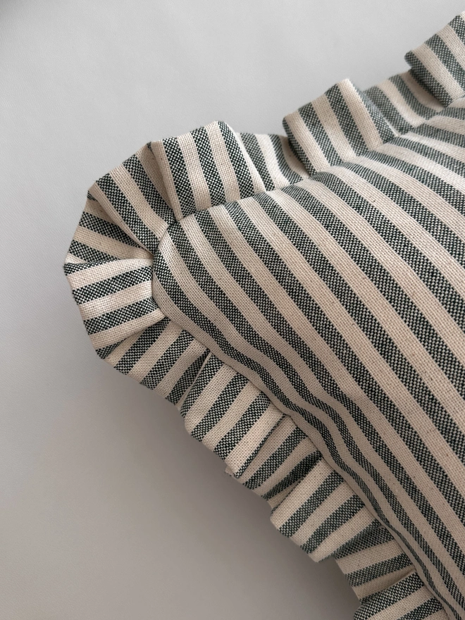 Cream Stripe fabric to the front and back of this 45cm x 35cm cushion with frill and zip opening.