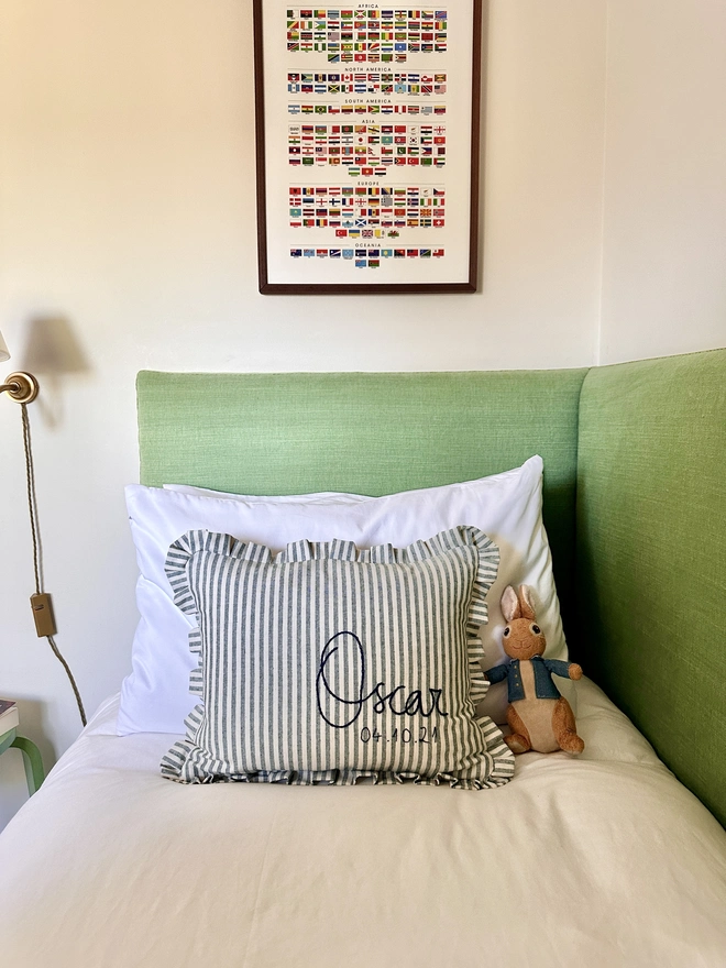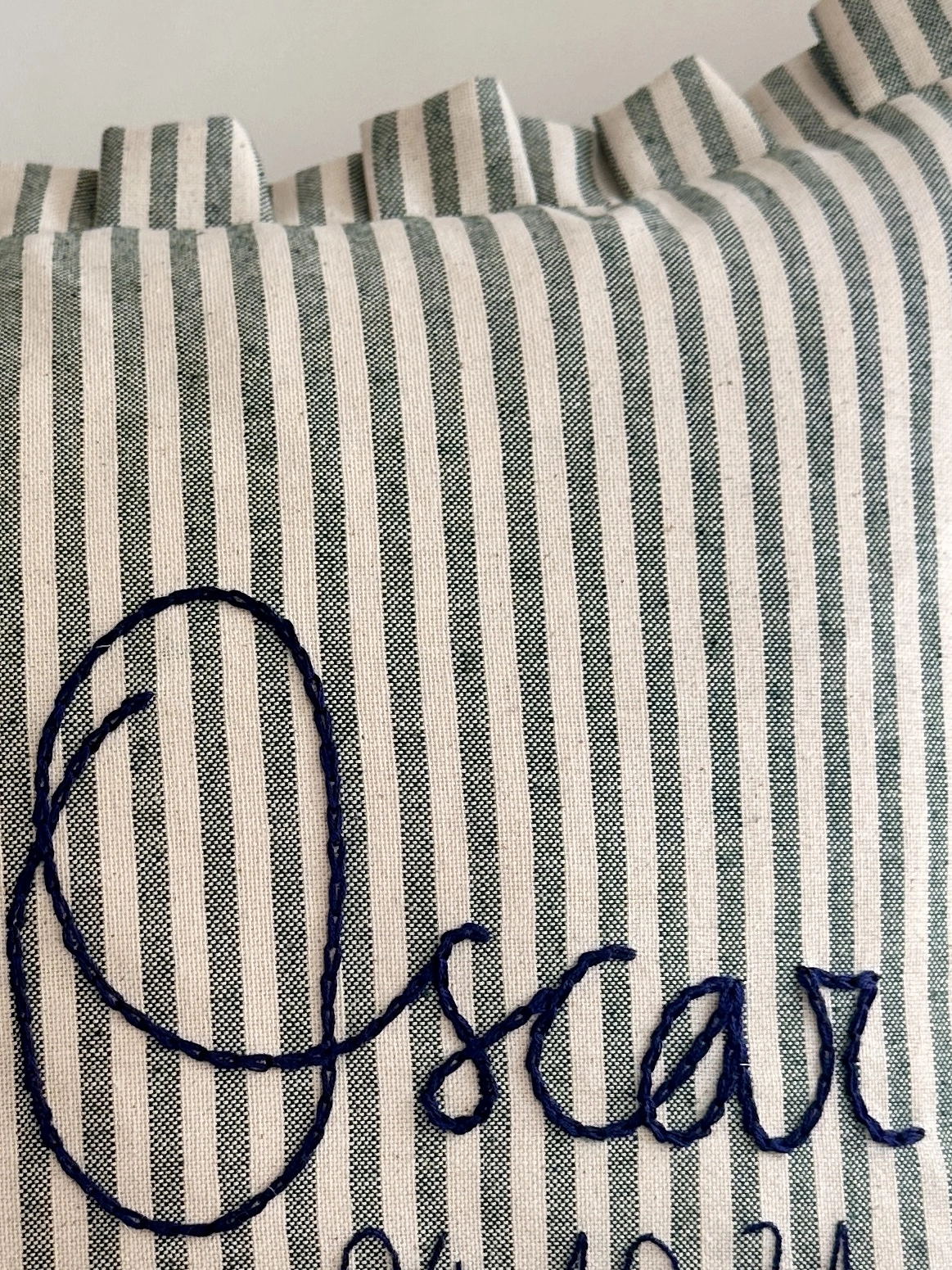 The covers are personalised to order, by hand, using the highest quality French embroidery thread.
