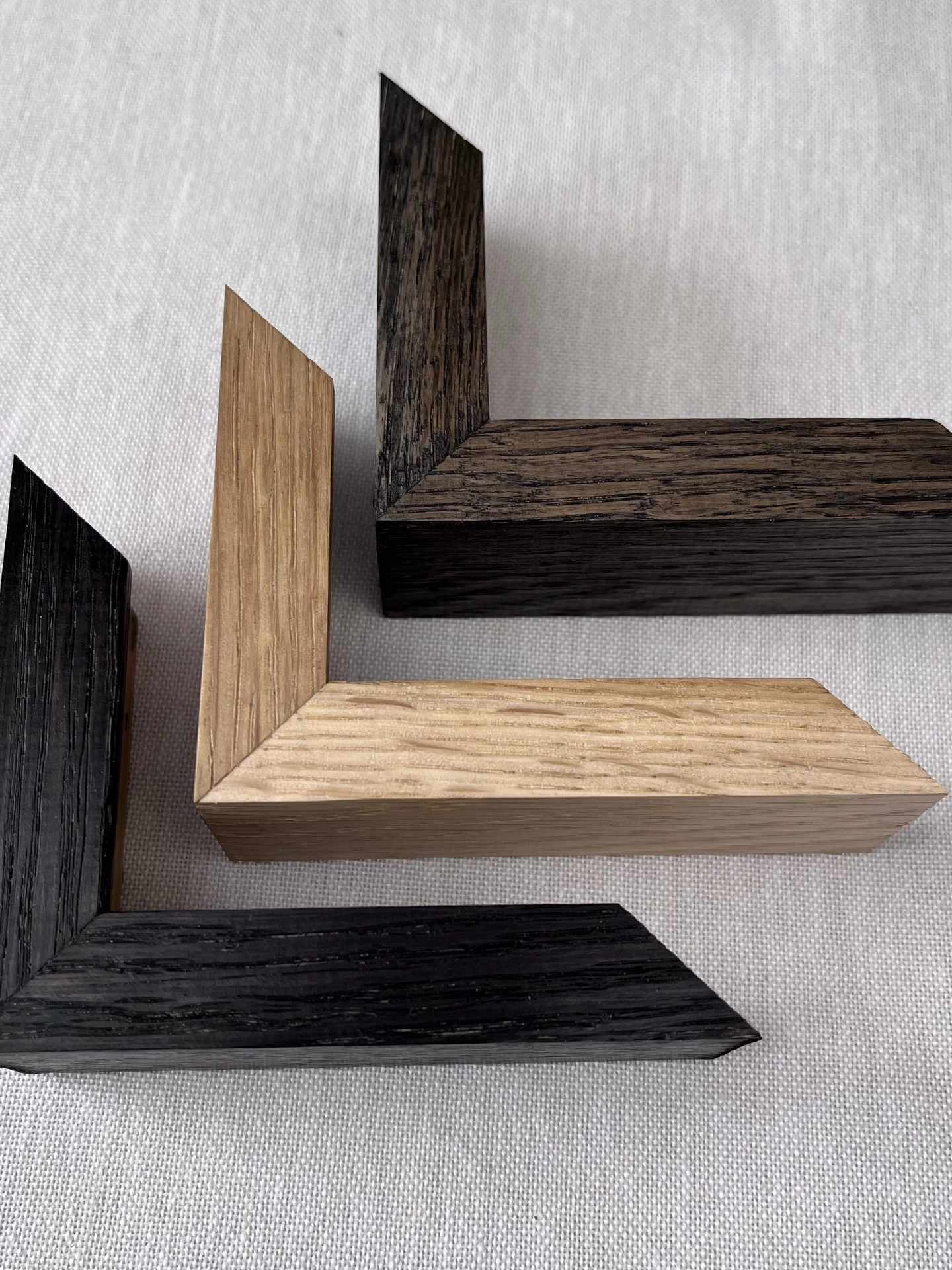 You may choose the finish of the frame; natural oak, dark brown stain, or black stain.