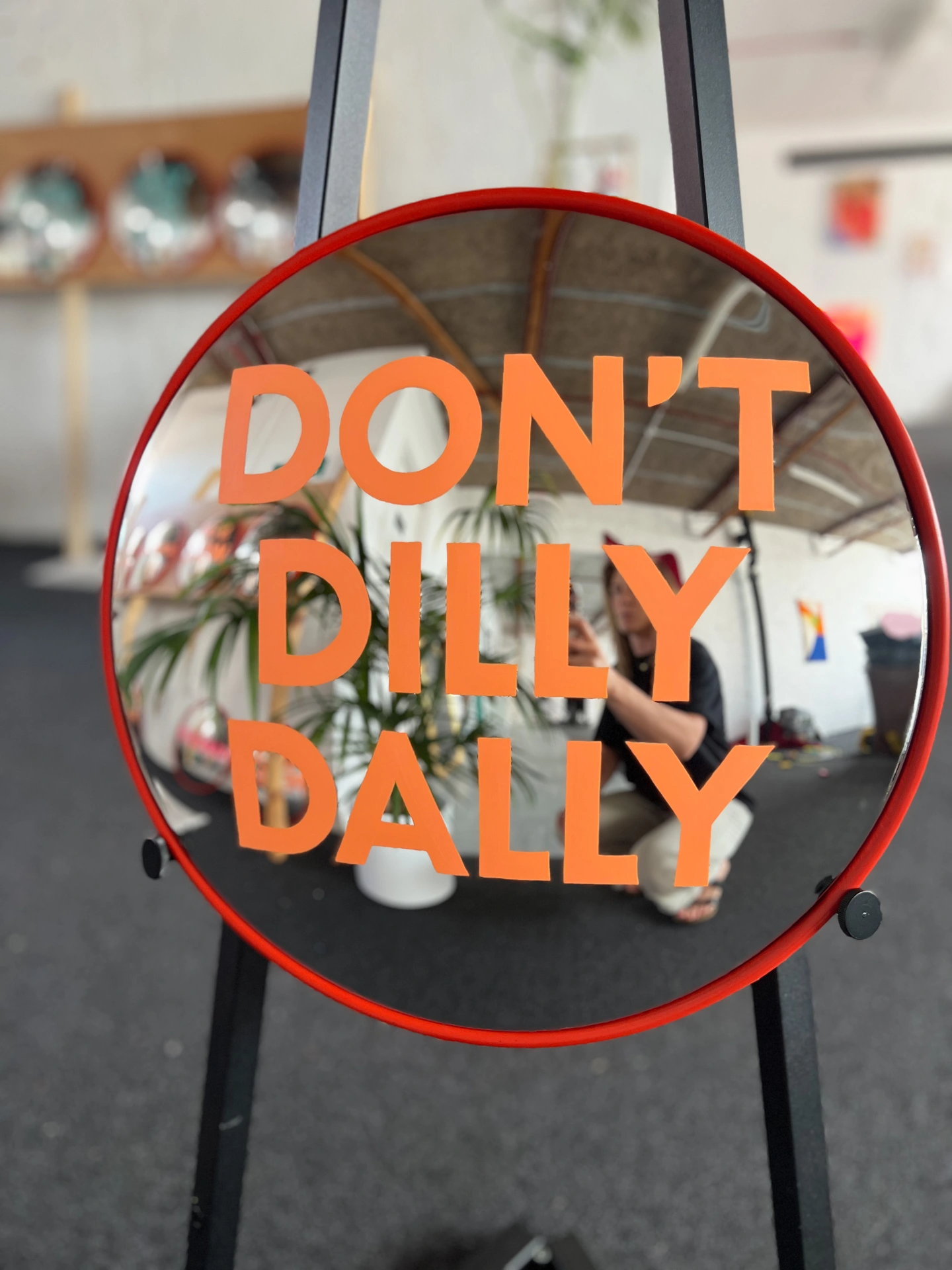 Each mirror is hand painted to order, allowing you to personalise it with a word, phrase or short message of your choice. The medium size allows for up to three words, while the large size accommodates longer phrases of up to eight words. Lettering is painted freehand, without stencils or tape, ensuring that every piece has its own individuality and subtle variation. Colour choices can be tailored to suit your interior, whether you prefer something understated or slightly bolder.