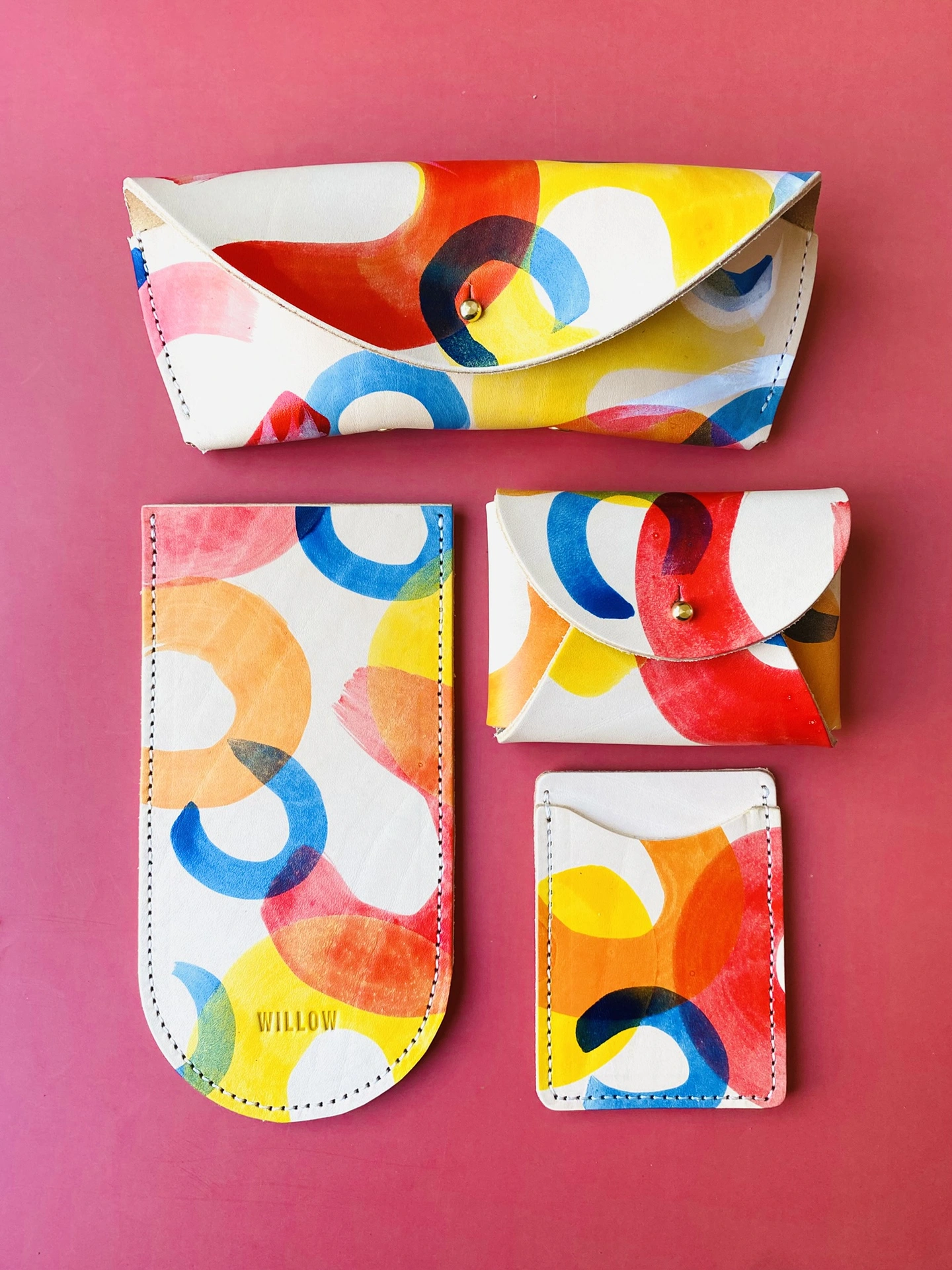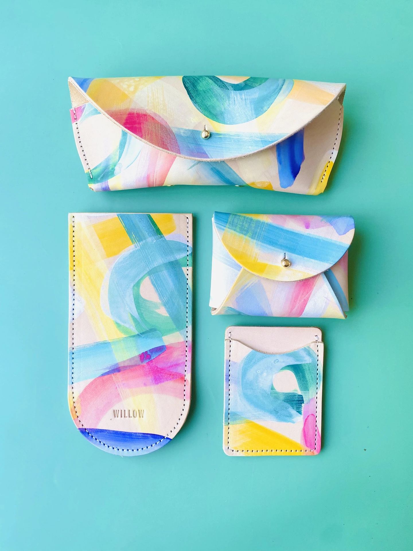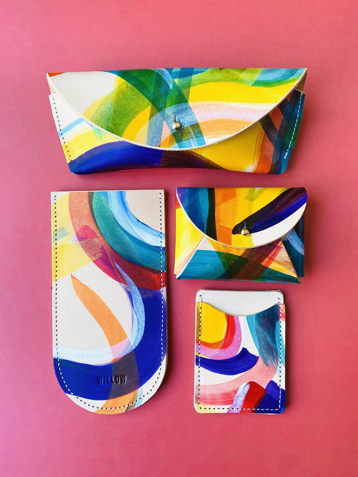 Each of these leather purses is lovingly handmade and hand painted by me. Every one is a unique expression of colour and no two will ever be the same, making it not just a purse, but a little piece of artwork you can carry with you.