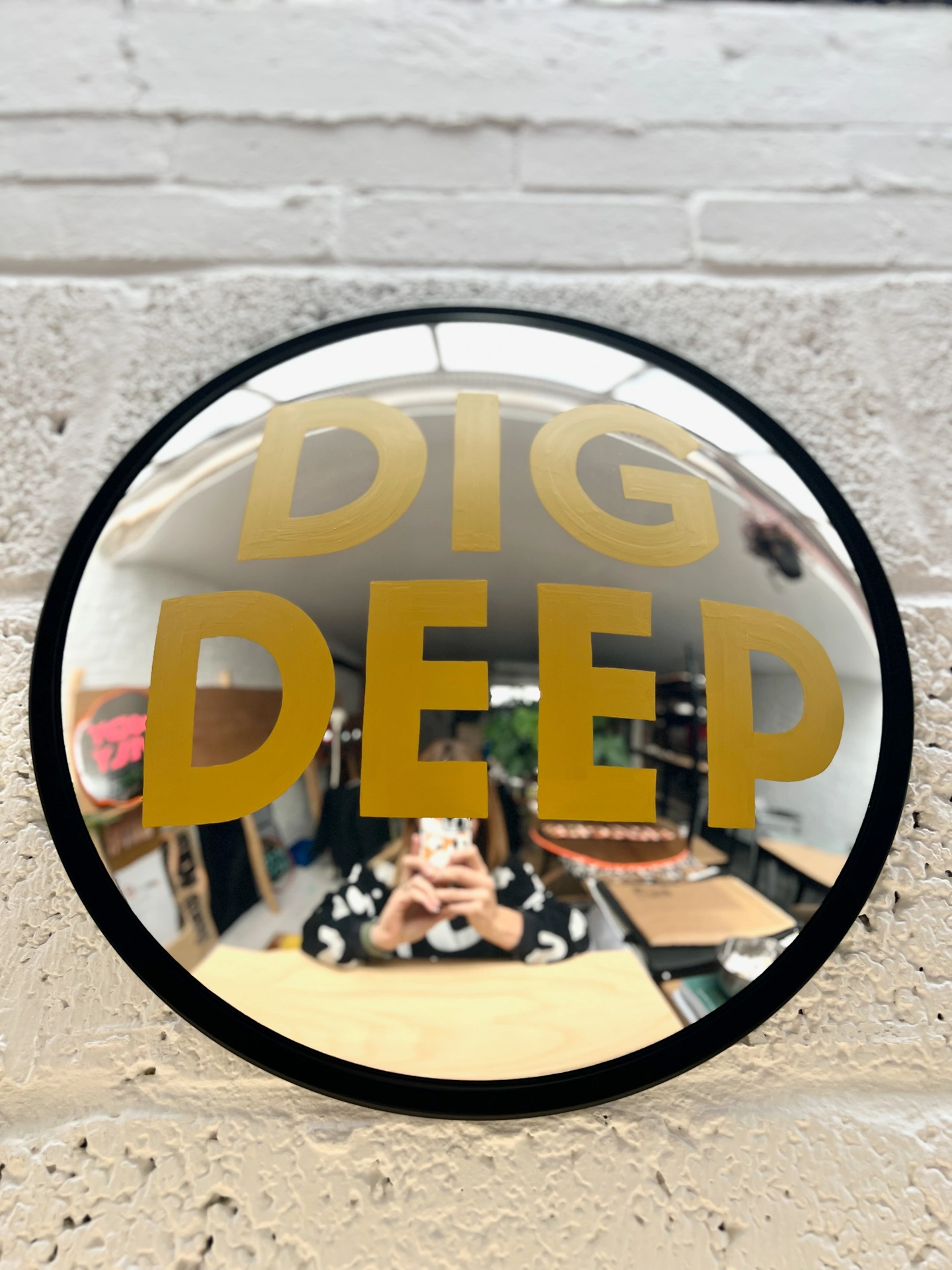 This hand-painted stainless steel convex mirror in a black metal frame is a carefully made, understated piece that balances function with subtle character. Drawing on traditional sign-painting techniques and a simple, purposeful form, it offers an alternative to conventional decorative mirrors — one that feels thoughtful, personal and striking.
