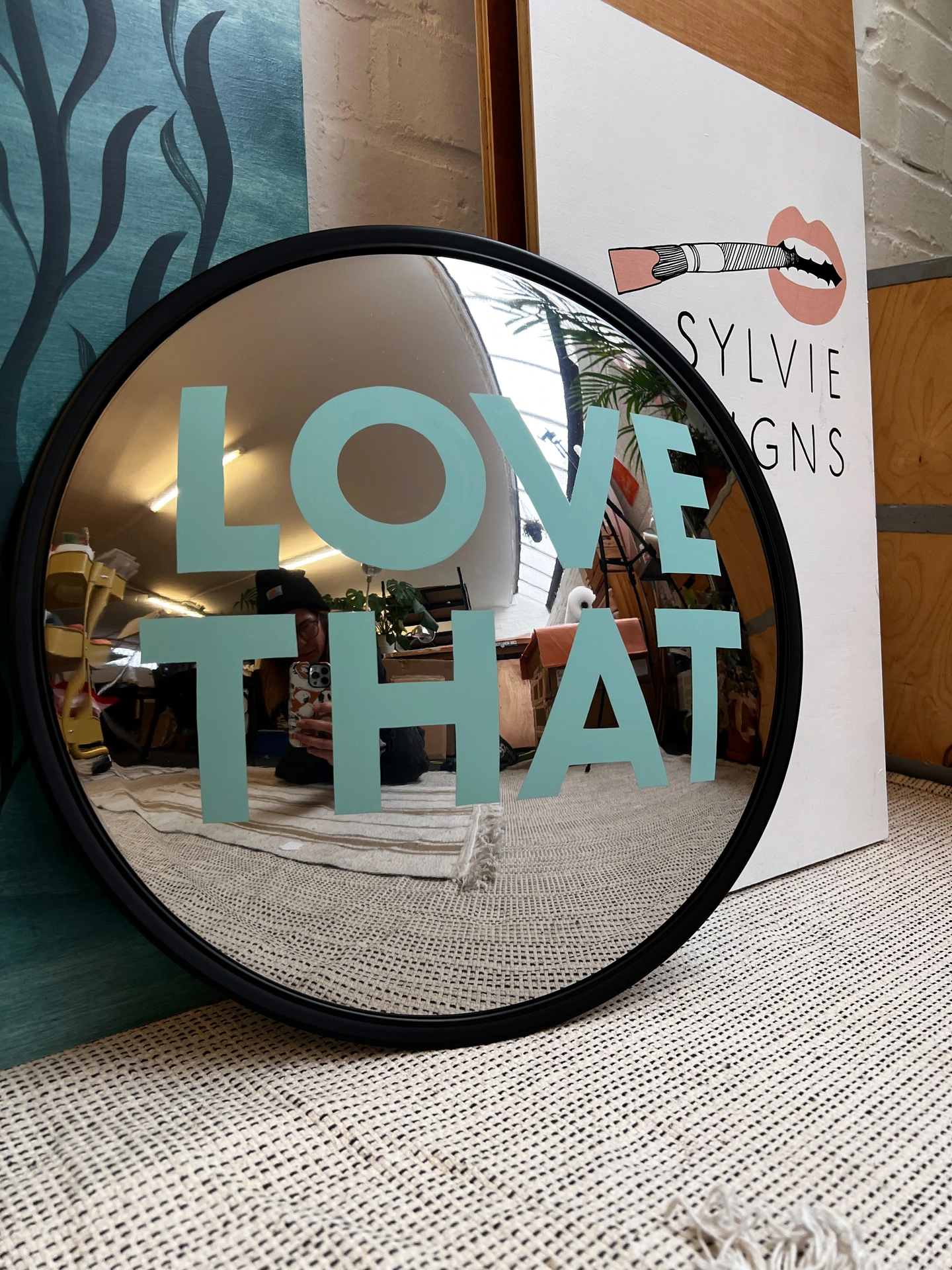 Each mirror is painted by hand to order. The lettering is painted using traditional sign-writing methods, without stencils or tape. Small differences in brushstroke and spacing are part of the piece’s character and reflect its handmade origin.