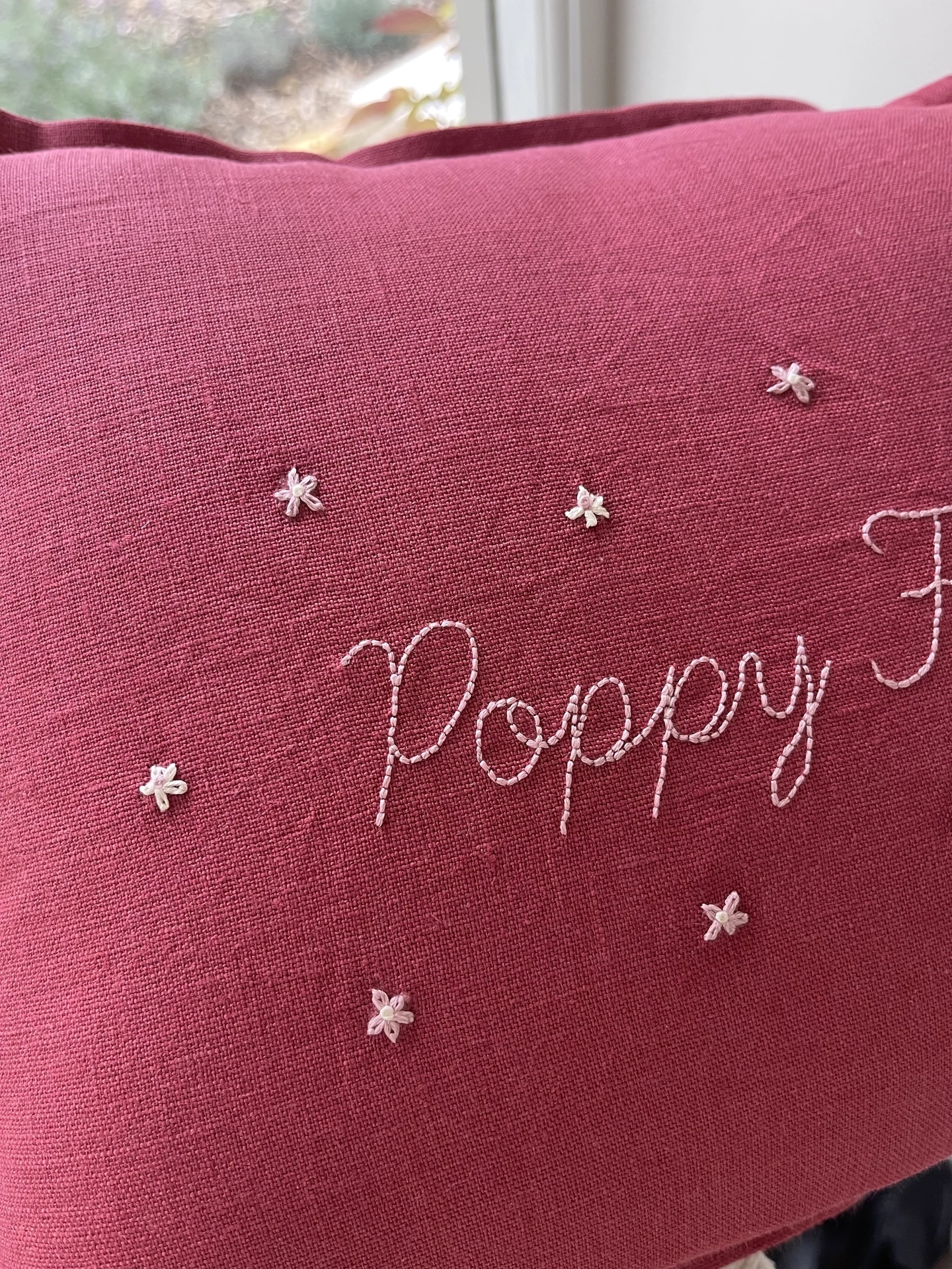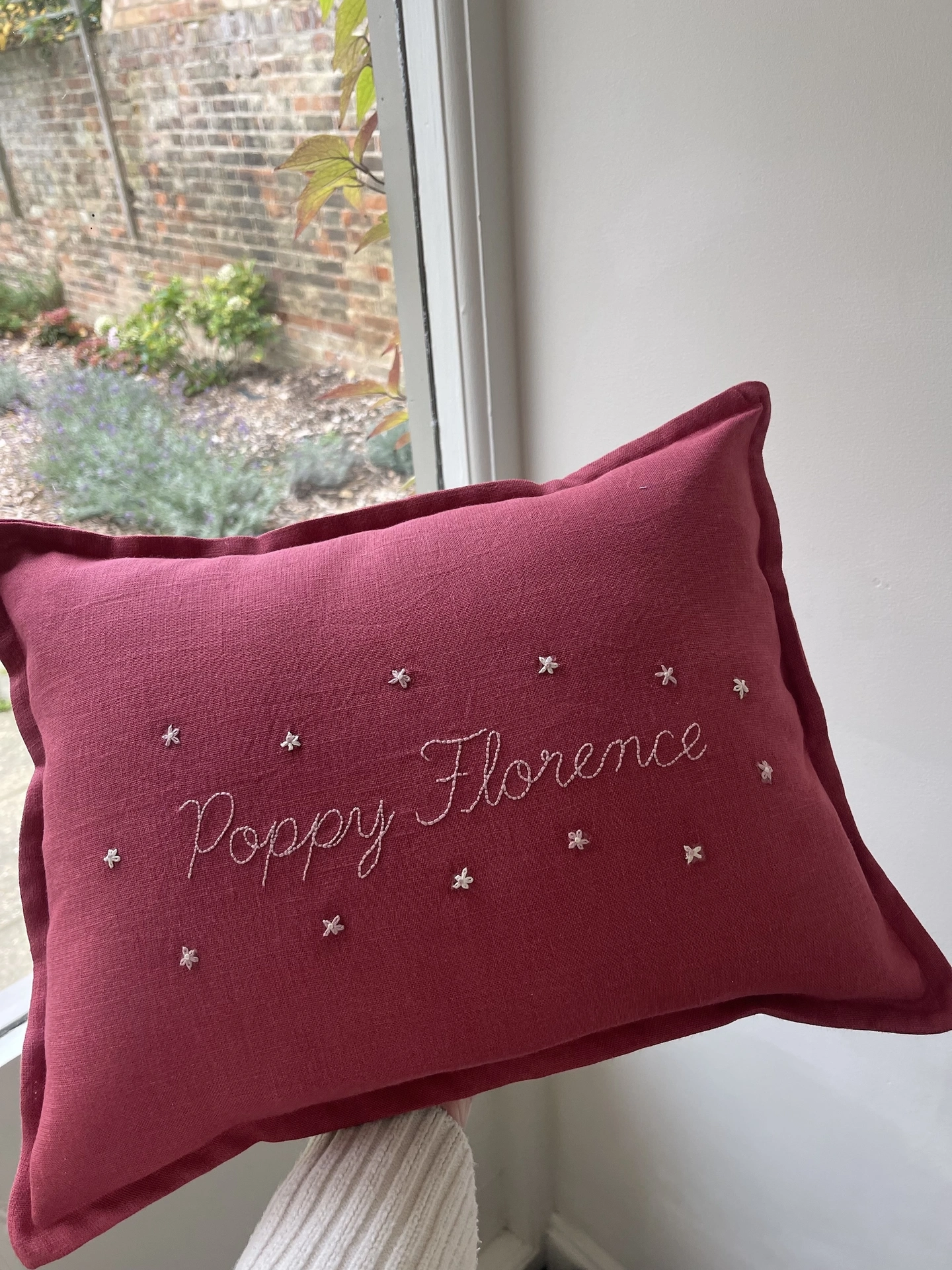 Personalised Handmade Embroidered Linen Cushion With Flowers