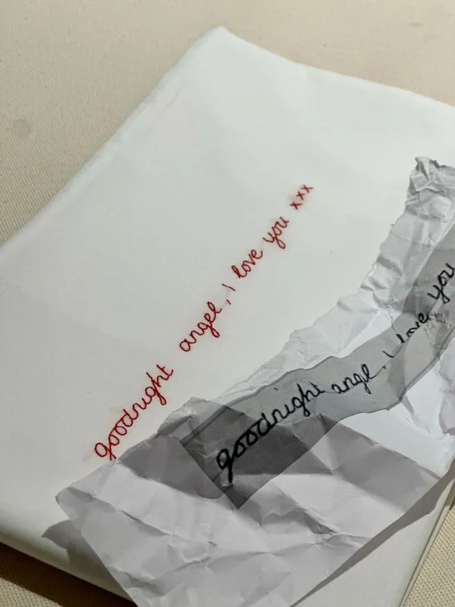 Please use the Customer Contact Form on the Contact Us page after you have placed your order and select ‘I need to send images to the Co for a personalised product’ option. You’ll then be able to attach the image of your handwritten message that you'd like embroidered on the pillowcase. You’ll also be reminded on how to send these within your Order Confirmation email too. If you could please send these within 24hours of purchase so your delivery time isn’t impacted.