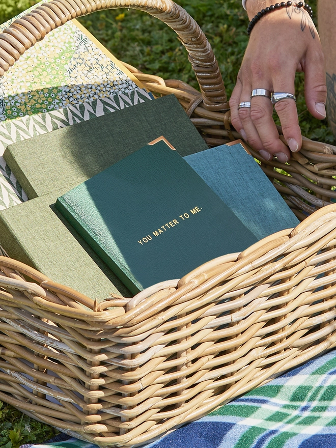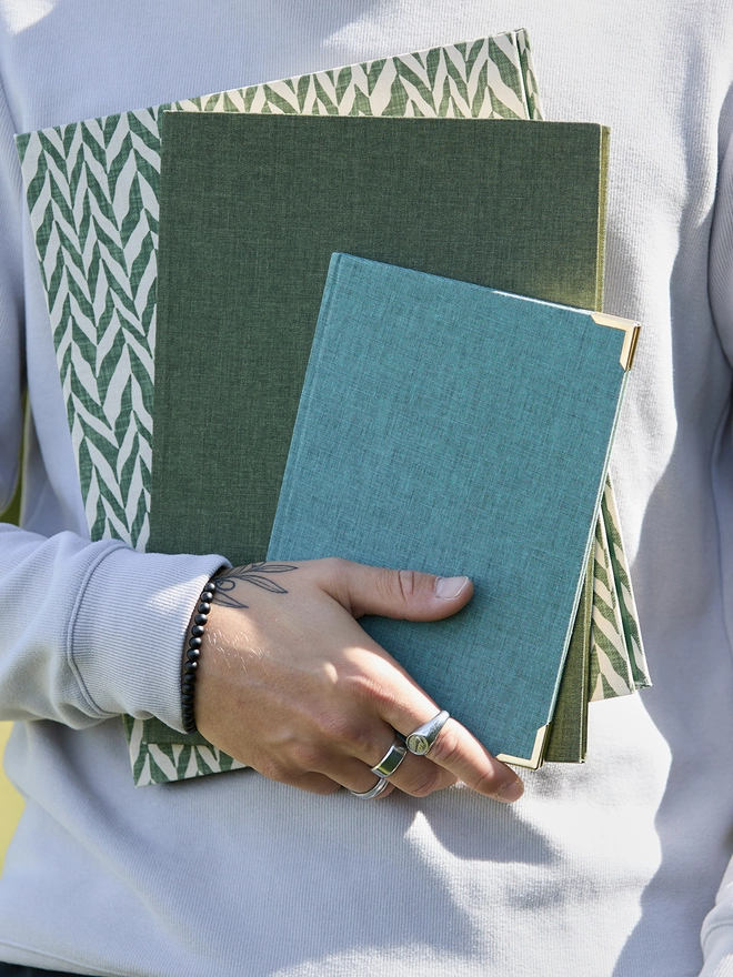 Bespoke personalised journals, individually handmade to order. Choose our personalised option and select between faux leather or fabric-covered options. We carry both cotton and linen fabrics in our fabric range. They are available in an array of colours and feel soft and tactile to the touch. Or opt for our faux leathers, made from premium, latex paper with an acrylic coating for maximum durability. It feels and looks like genuine leather.