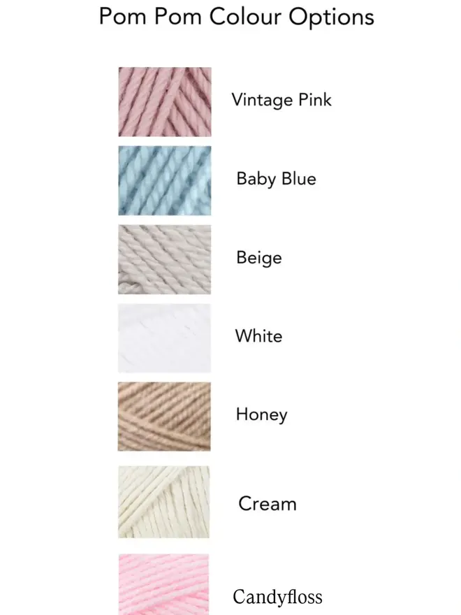 It can be personalised with lettering only or lettering and three pom poms.