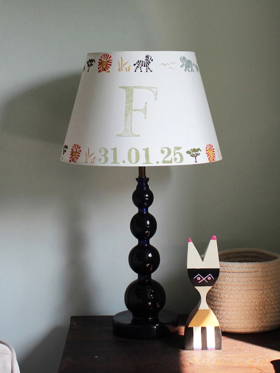 Create a storybook atmosphere in your child’s bedroom with the Kids Safari Lampshade, a playful and artist-crafted kids empire lampshade that is wrapped in adorable safari wonder. Each is lovingly handmade in the UK, using a cream card lampshade and skilfully block-printed by artisans in the Cotswolds—ensuring every piece bears unique, hand-finished charm. Personalise it with an initial and date for a standout personalised kids gift or personalised christening present.