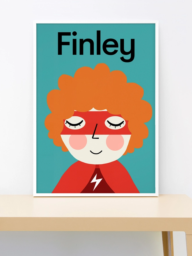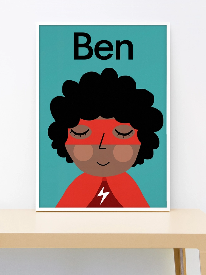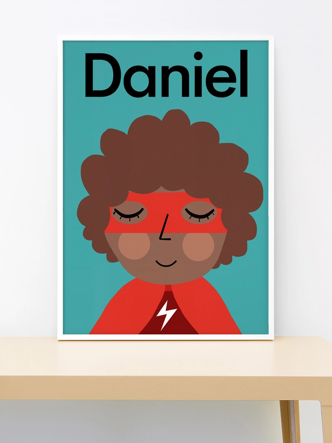 Personalised Kids Superhero Portrait - Curly