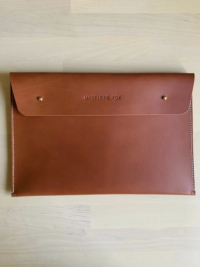 This handmade leather document holder is perfect for A4 documents, certificates, books and notes and comes in a range of colours to suit your style the can also be personalised on the front flap making it perfect for yourself, or a gift for others. The do...
