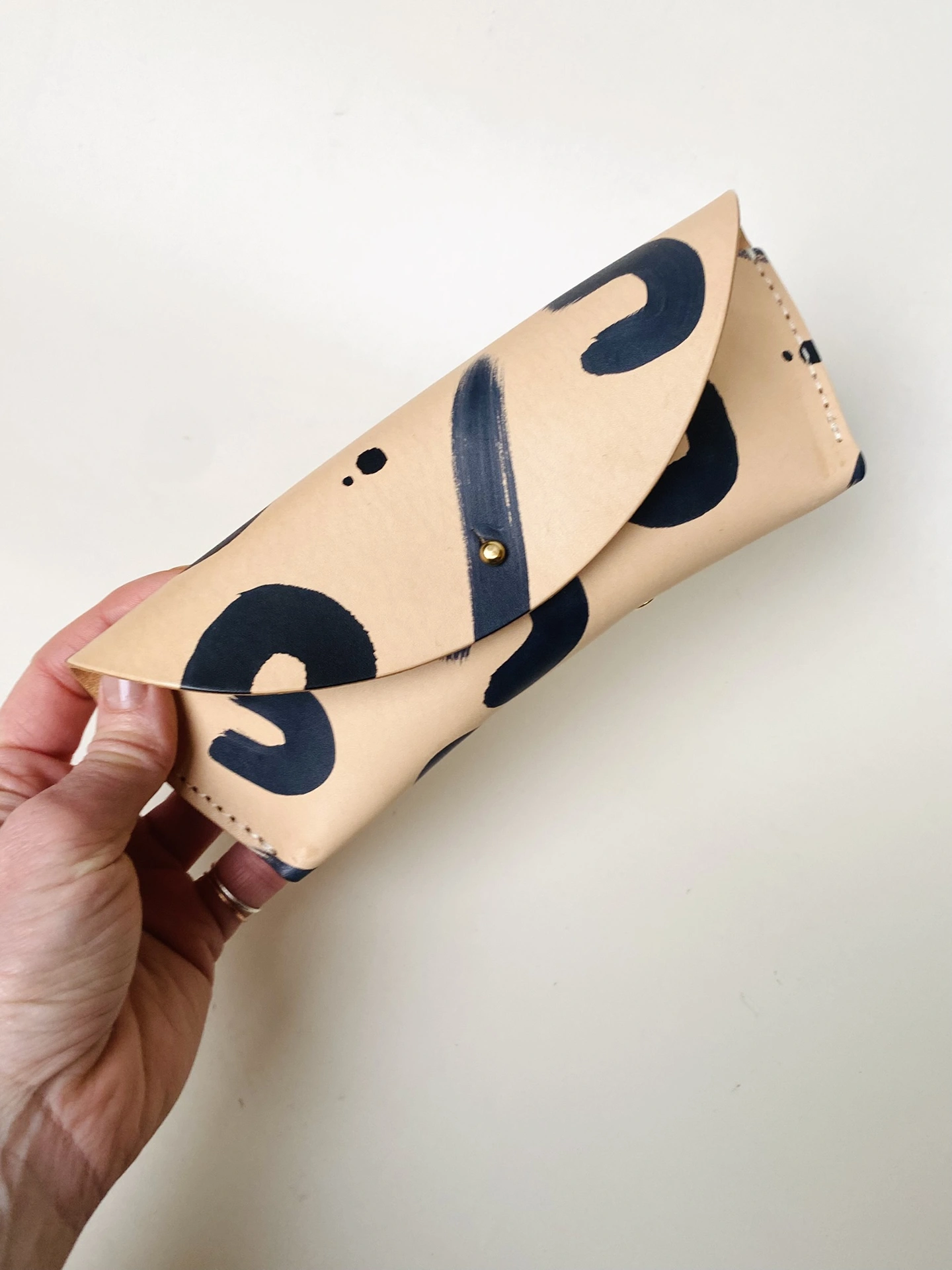This statement leopard sun glass case is hand painted with my distinct leopard design which remains popular. Every product is made from vegetable-tanned Italian leather, which improves with age. Natural variations in the leather add to its charm, giving you a truly unique piece to treasure for a lifetime.