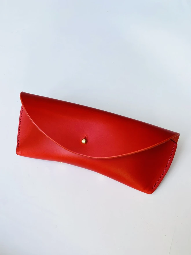 Keep your sunglasses safe with this beautifully handcrafted leather sunglasses case. Made from Italian leather, each case is designed with a minimalist look and made to last. A small internal support helps keep your glasses securely in place, with a solid brass Sam Browne stud fastening. The leather is thick and durable, offering excellent protection while comfortably fitting most sunglasses or everyday glasses