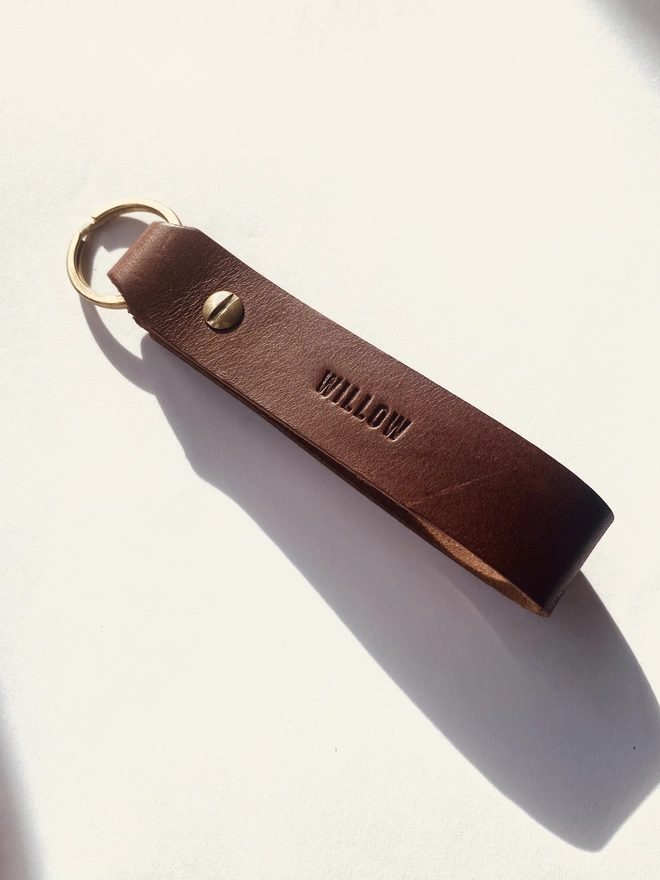 These key loops/rings are made with high quality leather hides and can be personalised (Please refer to personalisation details below). Available in a variety of colours, with solid brass details. Designed to be worn on a belt, bag strap or just as a fob and because of the fastening you can detach the key loop.