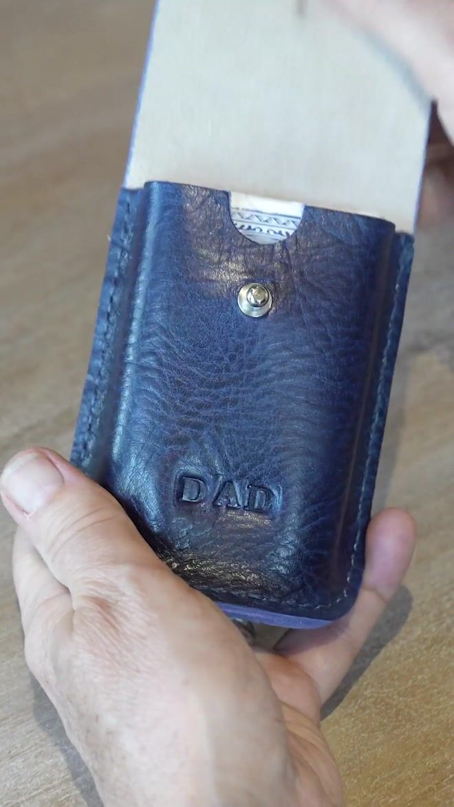 This leather card pouch comes with a brand new deck of cards so it's ready for gifting. Open and close with a nickel Sam Browne stud. Add the finishing touch by having your case personalised with up to 3 letters. UPPER CASE is the only lettering available, numbers and special characters & .