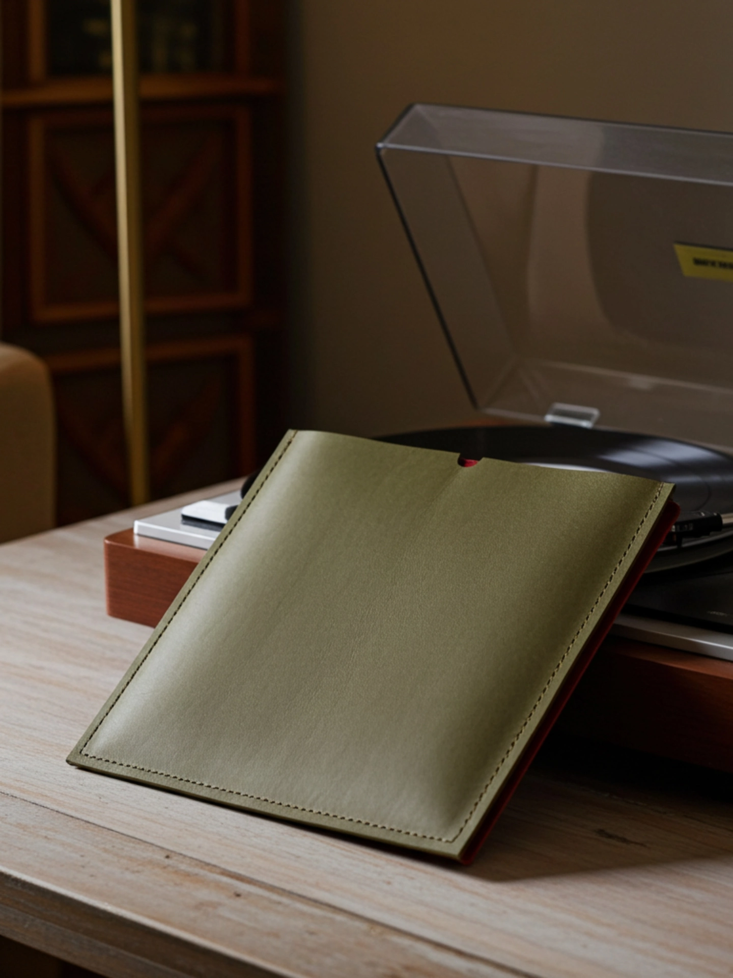 A handmade leather record holder that can keep your vinyls safe and sound.