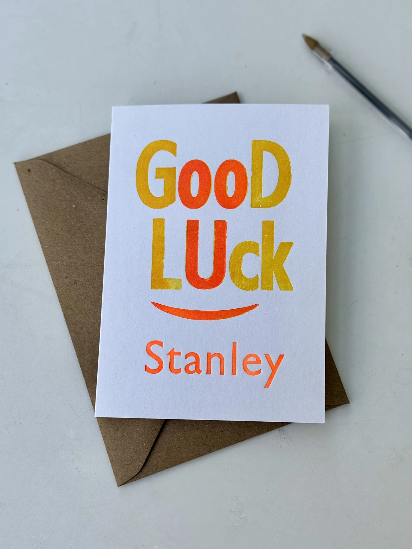When exams are looming, this personalised card is sure to raise a smile. Letterpress printed by hand using vintage wooden and metal type.