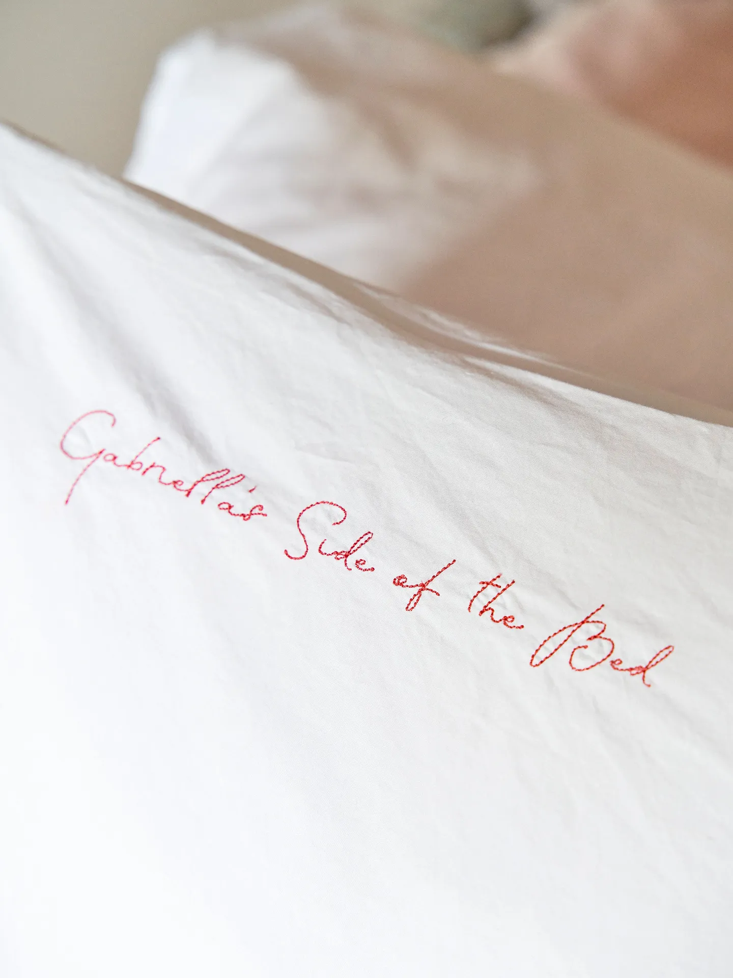 Transform your bedroom into a luxurious sanctuary with our embroidered Love Note Pillowcase. This personalised gift will add a touch of sophistication and charm to your home décor. Each stitch is crafted with love, making it the perfect way to express your affection for your loved ones.