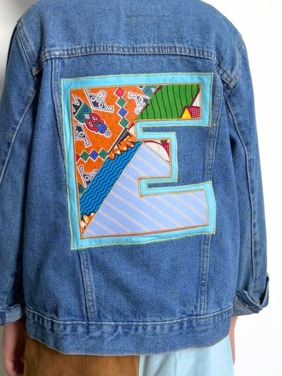 Every pre-loved jacket has been handpicked, the fabric is already soft, worn-in, and full of character – the kind of feel only genuine vintage denim can offer. The colourful patchwork letter's are put together using reclaimed fabrics in a lovely mix of bright colours.