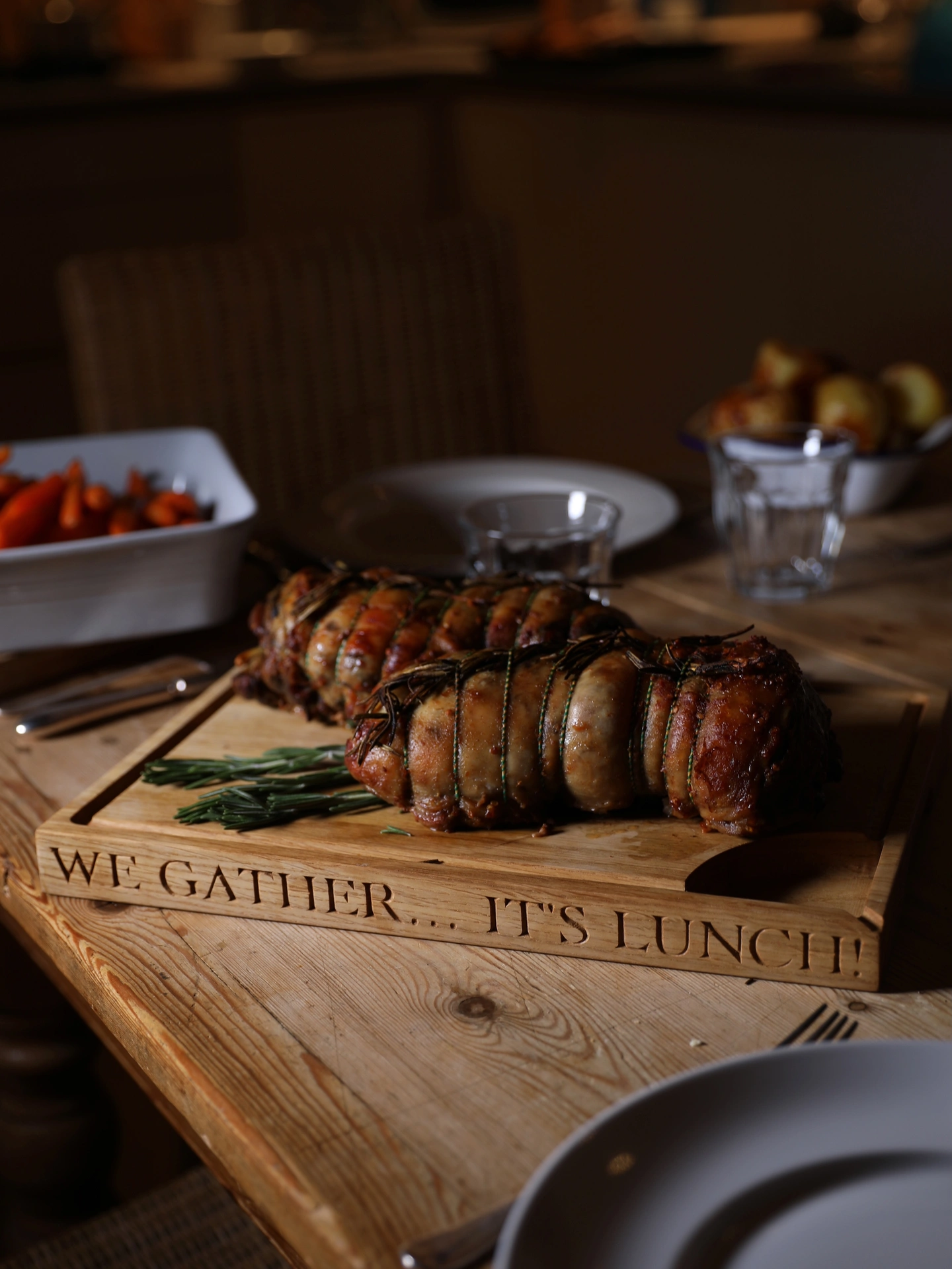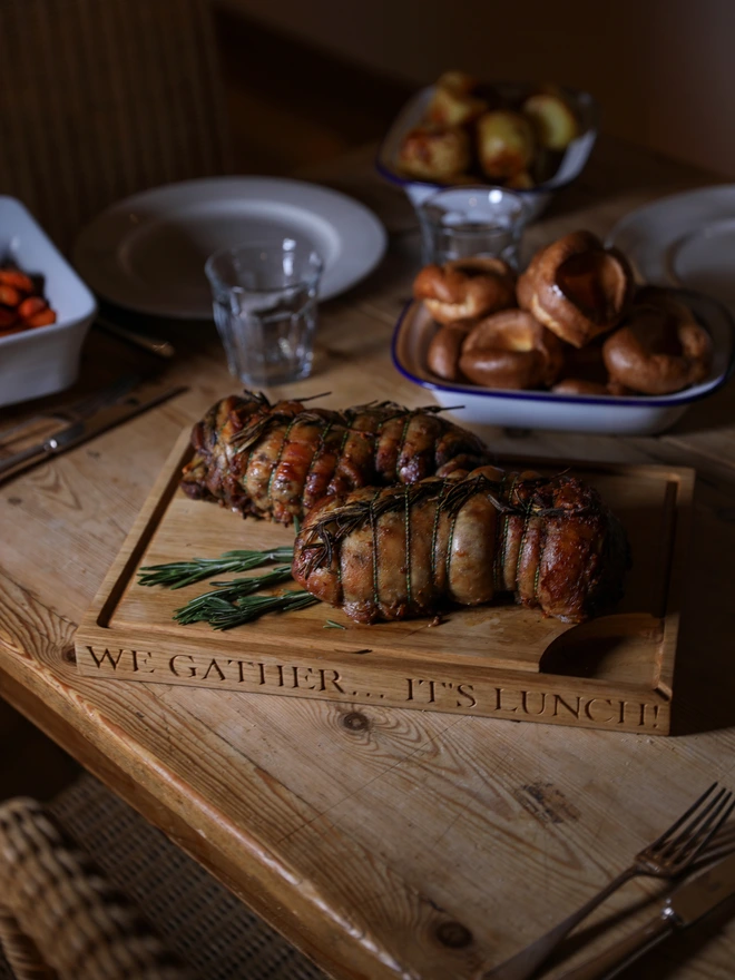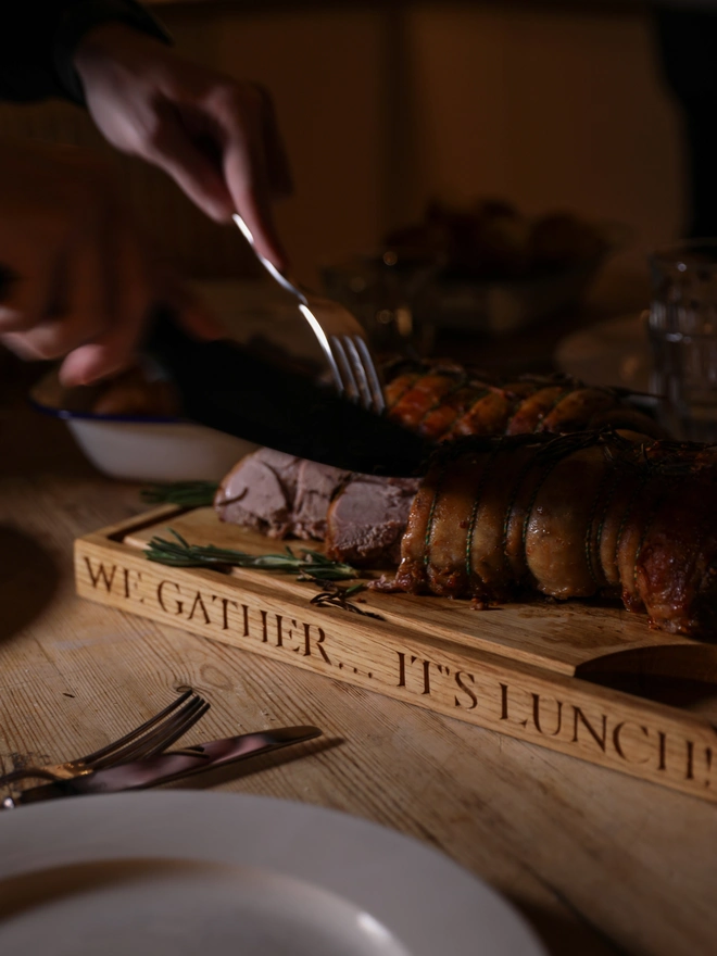 Our beautiful solid oak carving board becomes a centrepiece of your family lunches...