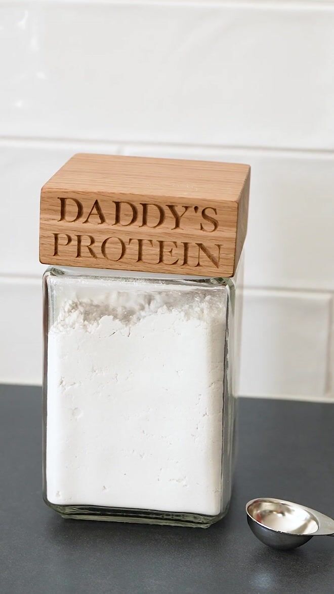 Enhance your health and fitness lifestyle with our Personalised Fitness Jars from The Oak & Rope Company, designed with aesthetic appeal, functionality, and daily convenience in mind. Engraved with 'DADDY'S PROTEIN' this makes a great Father's Day or birthday present.