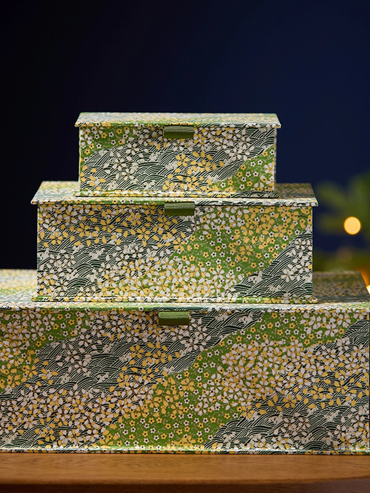 Our Personalised Keepsake Box provides safe storage for cherished belongings. Our bespoke Memory Boxes / Decorative Keepsake Boxes are available in multiple covers and sizes. Our Patterned selection offers handmade silk-screened papers with vivid colour combinations that originate in Japan.