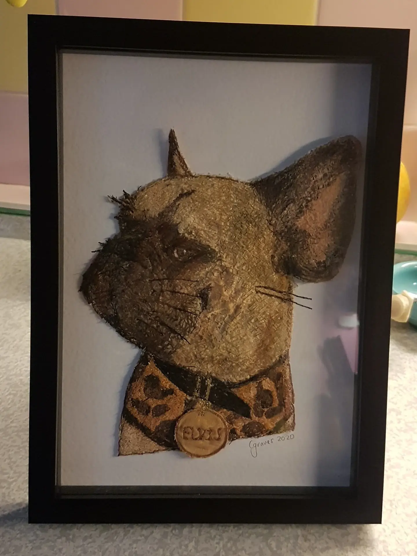 Each piece is created using Free Motion Embroidery and Needle Felting techniques to bring your beloved pet to life — capturing their unique character and charm...