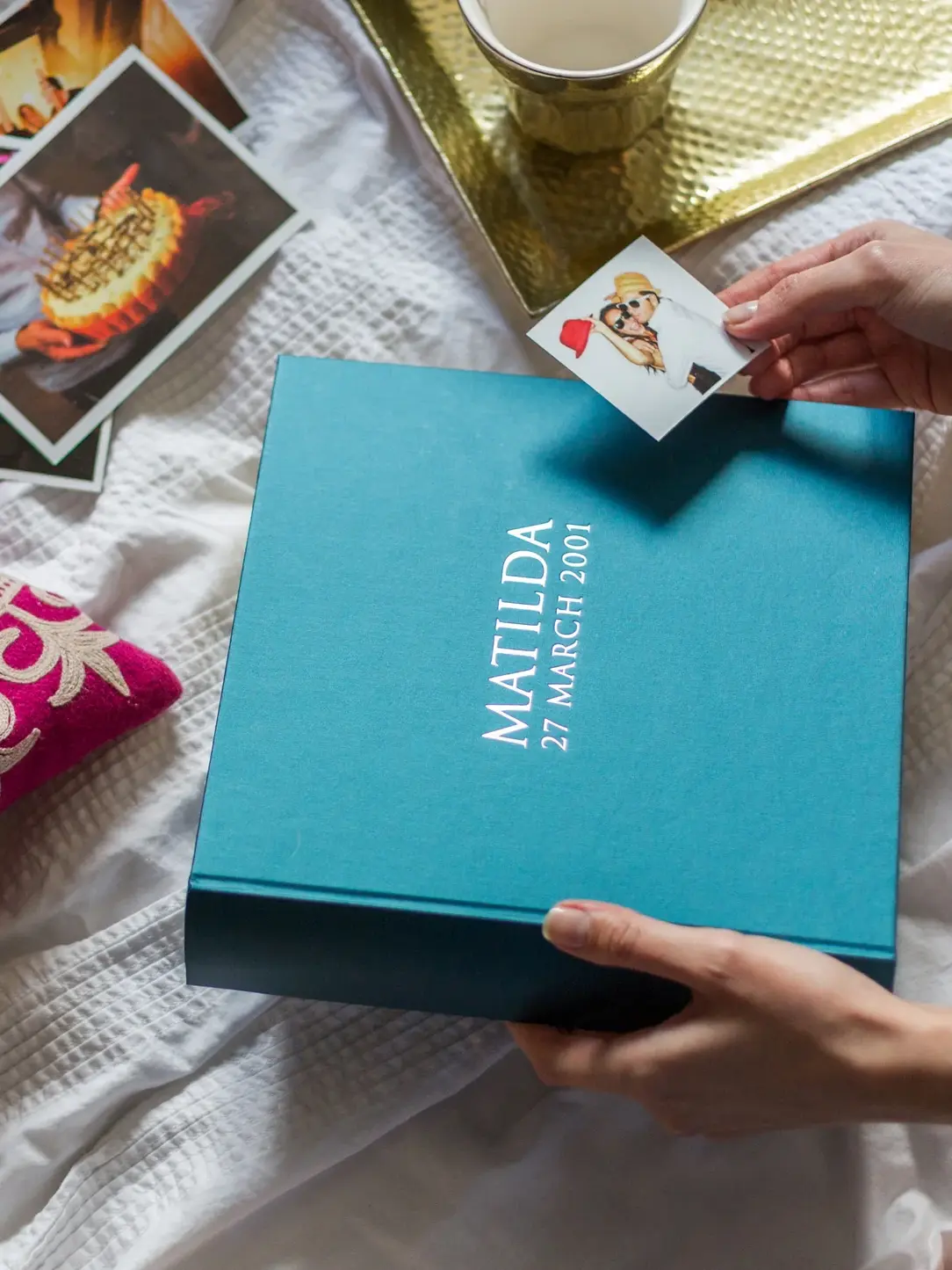 Featuring a timeless serif font hand printed onto our elegant 'jewel' book cloth, this exquisite photo album is designed to hold enduring appeal. Available in eleven deep, gleaming shades and a choice of lettering colours, these albums are a lovely and very personal way to give a gift that shows real care and thought. The ideal way to mark a birthday or commemorate the arrival of a new baby, they are built to last and be shared and enjoyed for years to come.
