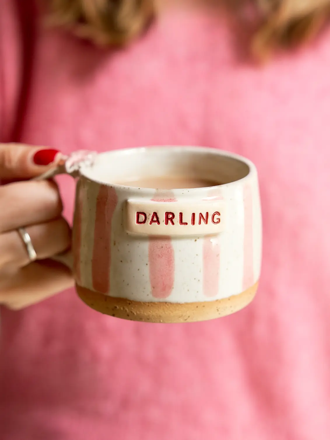 Each mugs lovingly wheel-thrown from speckled clay, giving every piece its own natural character. The handles are carefully shaped and finished with two delicate flowers and a leaf, making each one truly unique. A gentle cream glaze brings out the warmth of the clay with speckles showing through, with soft pink stripes brushed by hand for a touch of charm.