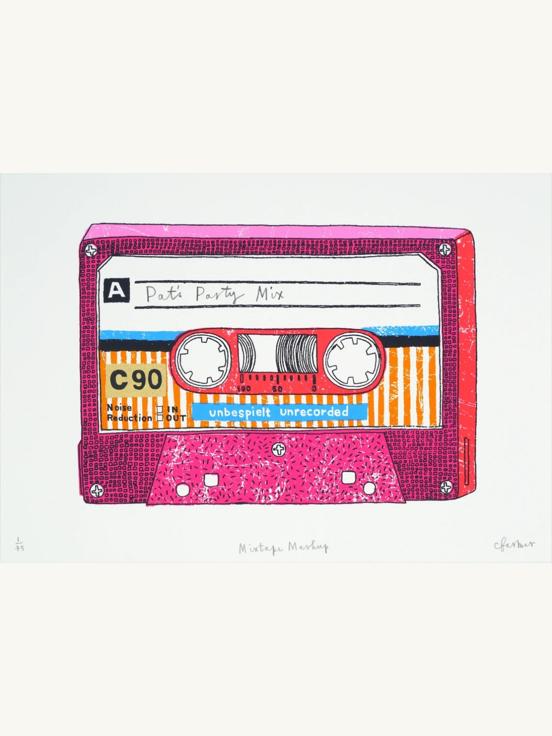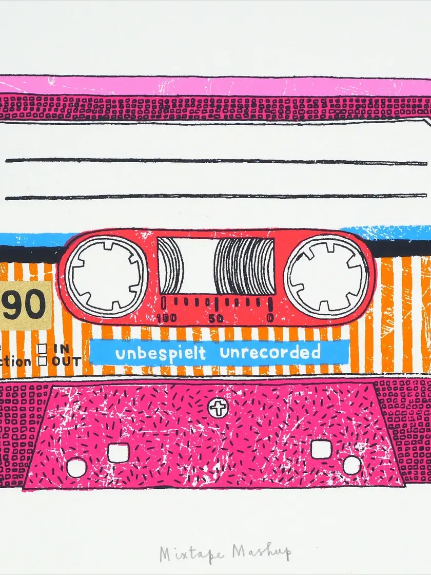 Personalised Pink Mix Tape Screenprint Mixtape Mash Up