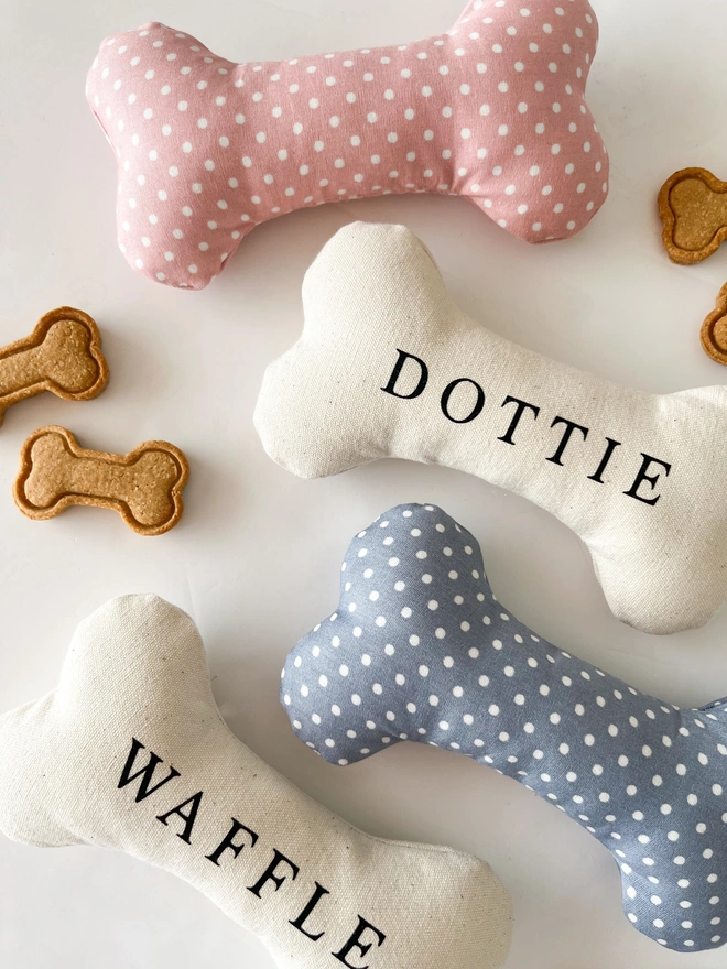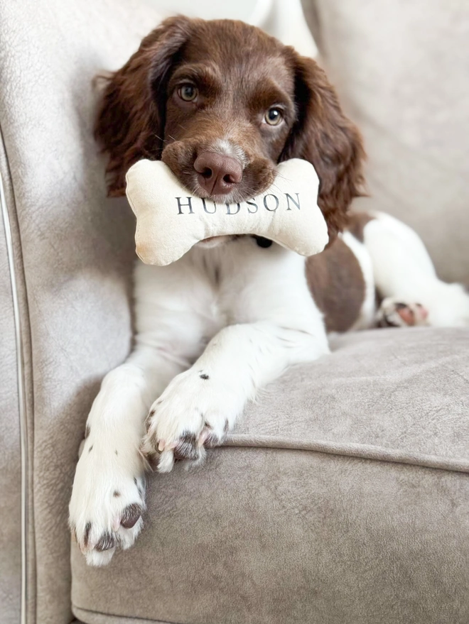 1x Personalised Canvas Squeaky Bone Toy – Customised with your puppy’s name