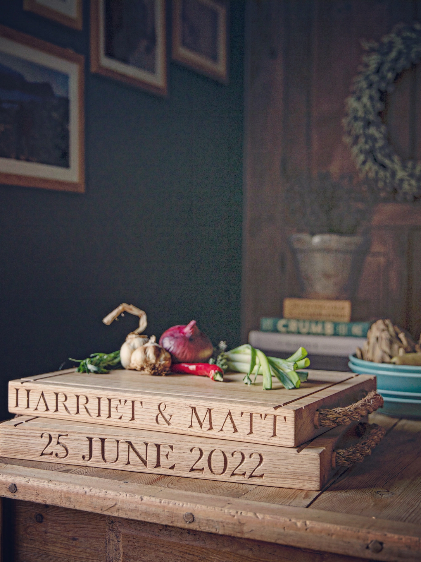 Our oak chopping boards are available in two thicknesses, but we’d recommend the thicker version to make your personalised messages more readable.