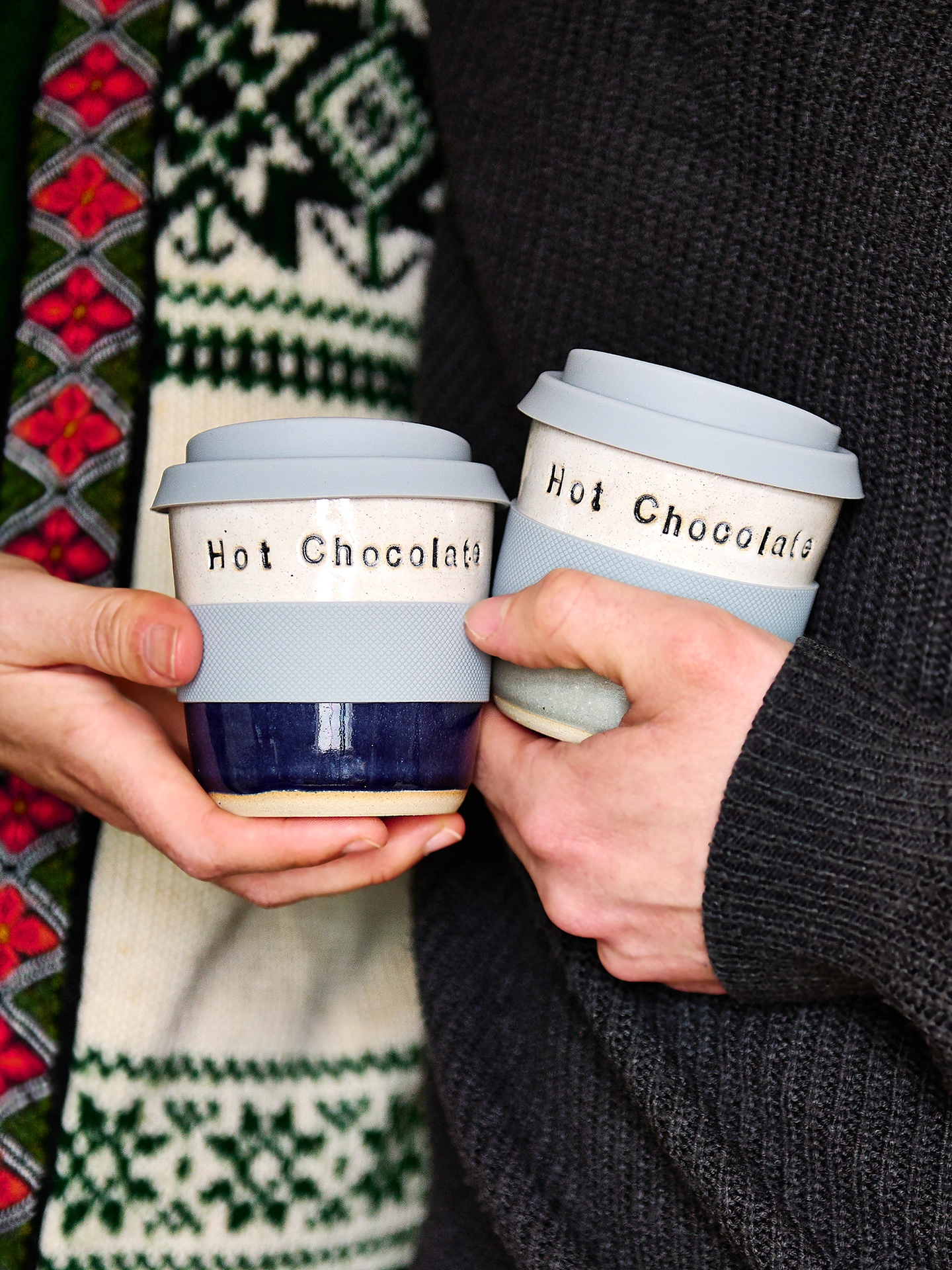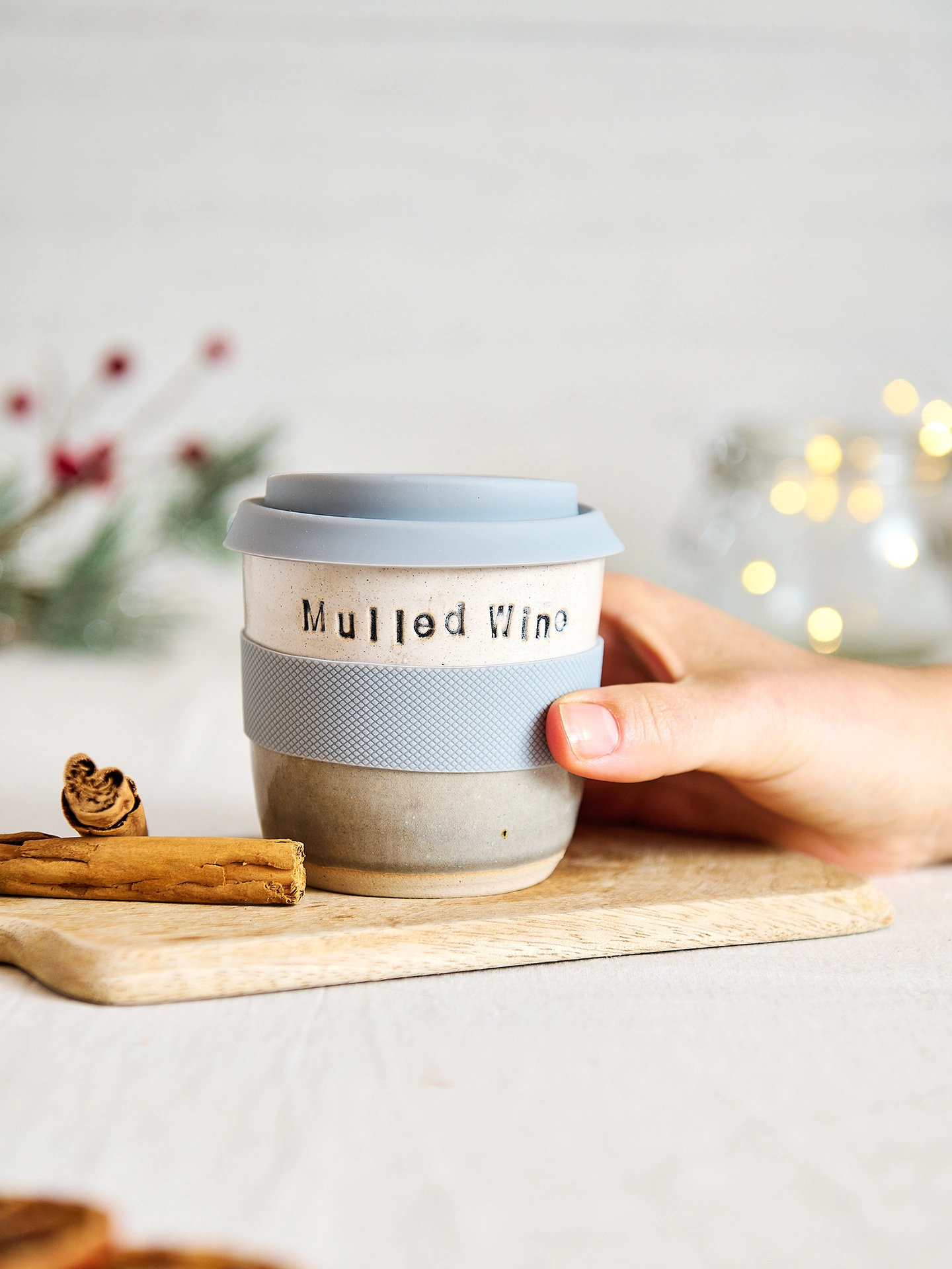 Each travel mug comes with a grey silicon band and matching silicon lid.