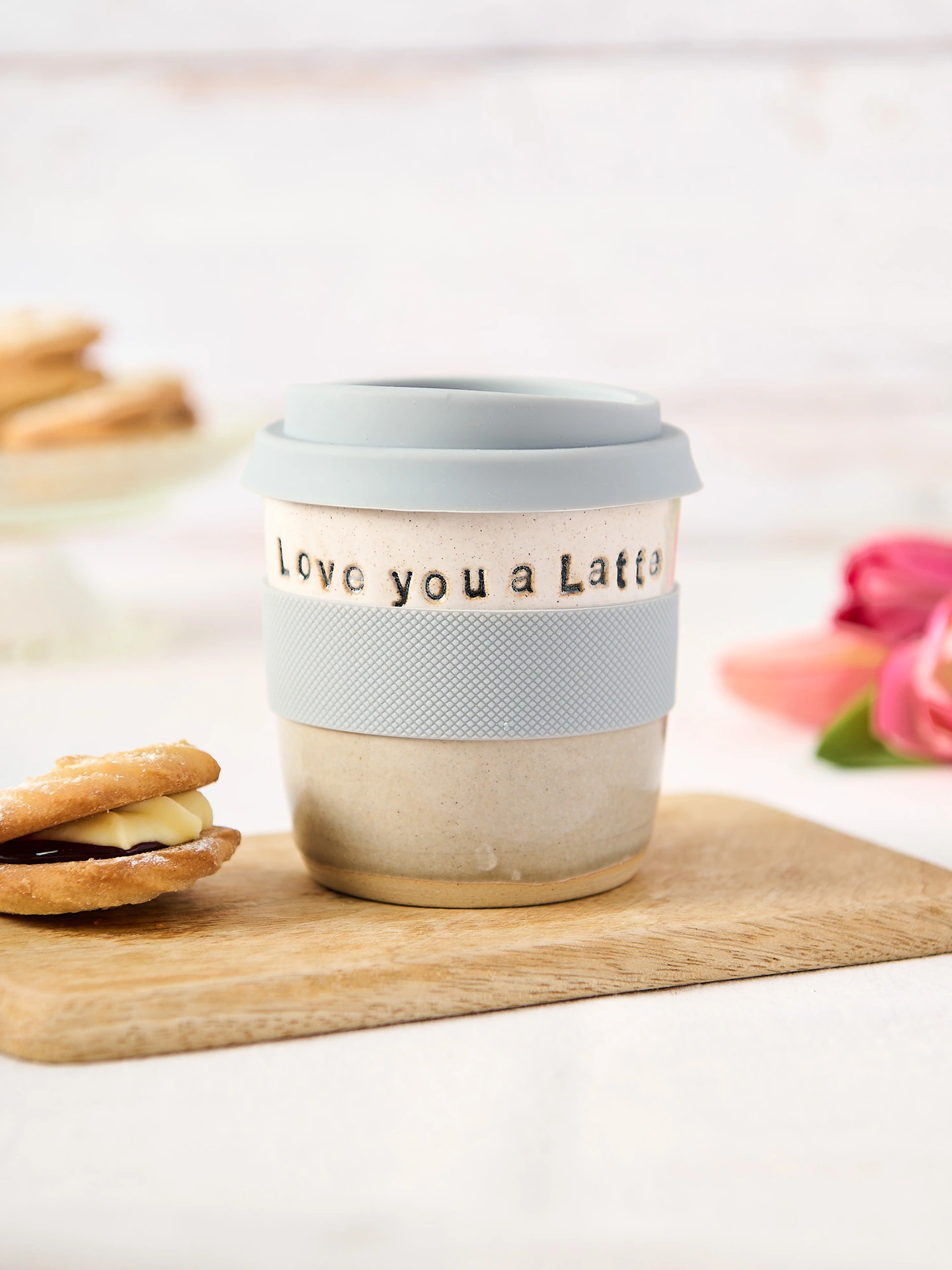 A short tumbler size ceramic travel mug perfect for flat whites and lattes.
