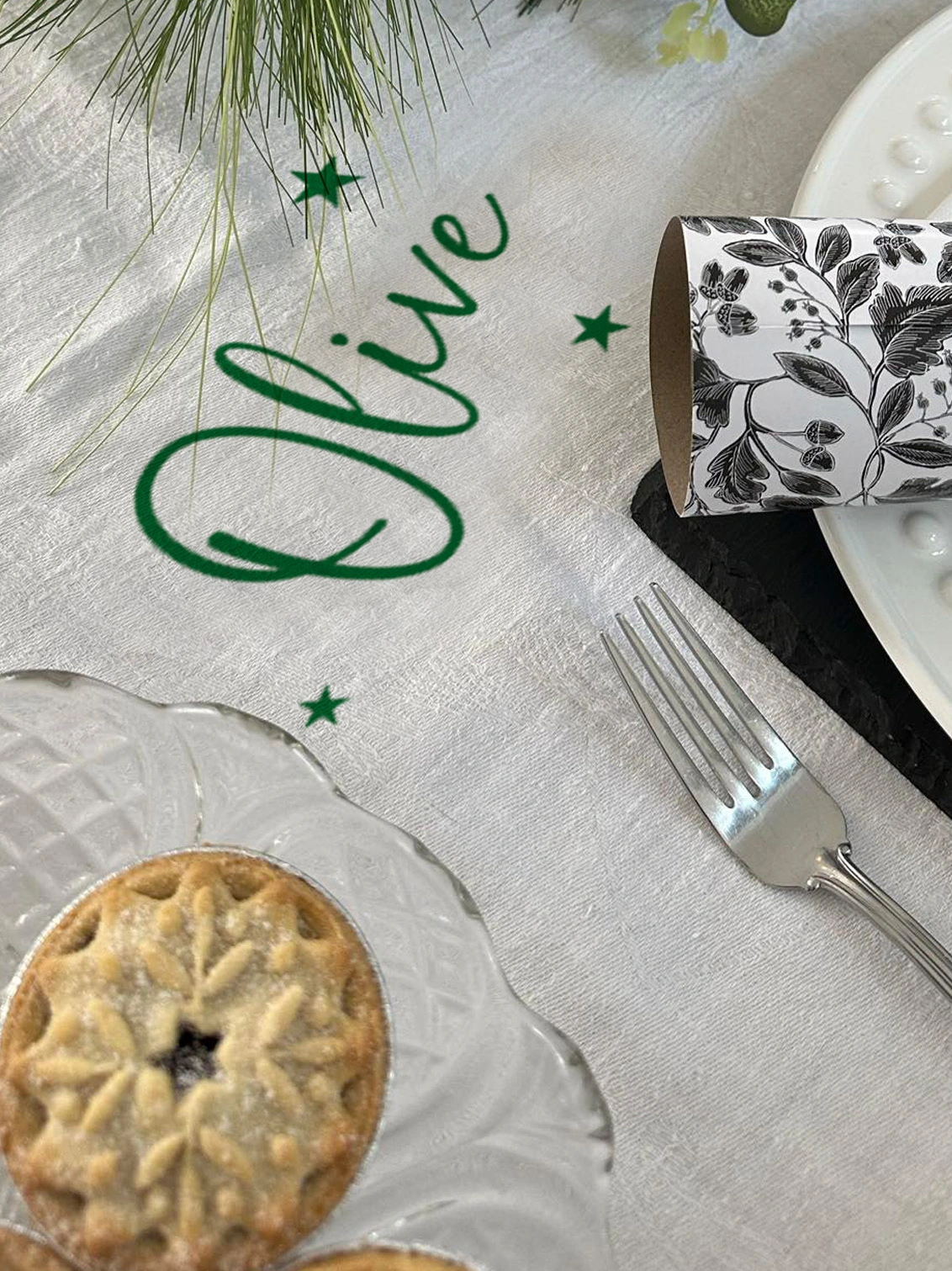 These place names are designed to adhere onto your tablecloth or napkins, creating thoughtful, bespoke place settings that make every guest feel special.