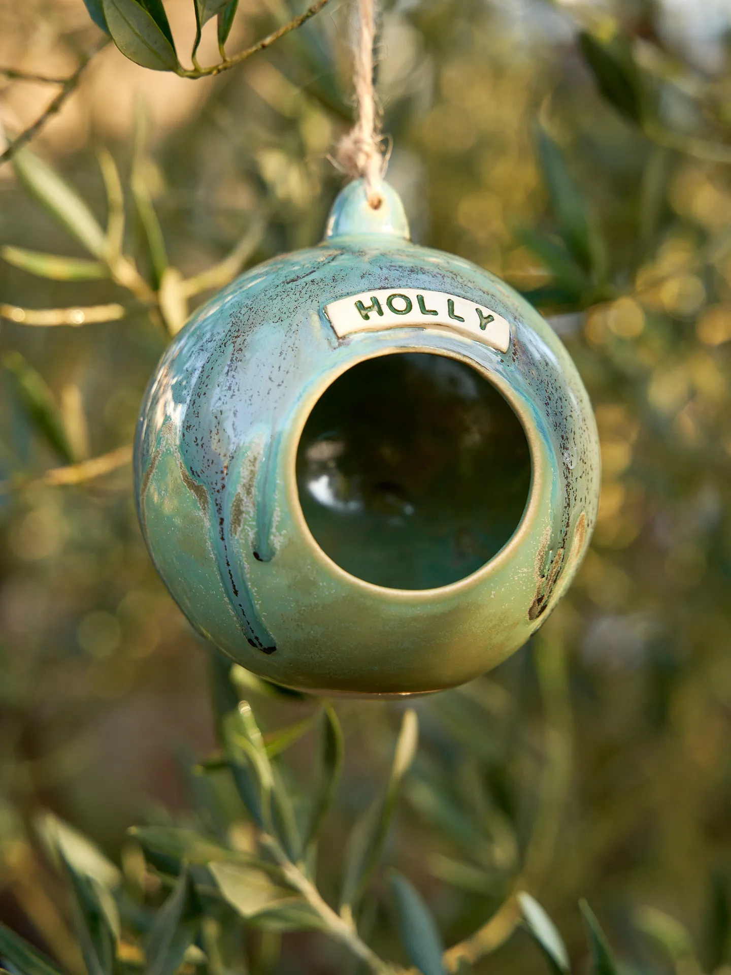 As seen on ITV ‘Be Your Own Boss’. Our stoneware bird feeders can also be personalised, making them an extra‑special gift or keepsake. We can add up to 10 characters—perfect for initials, a short name, or a meaningful word—creating a unique piece that feels truly yours while still being fully functional and ready to welcome visiting birds.