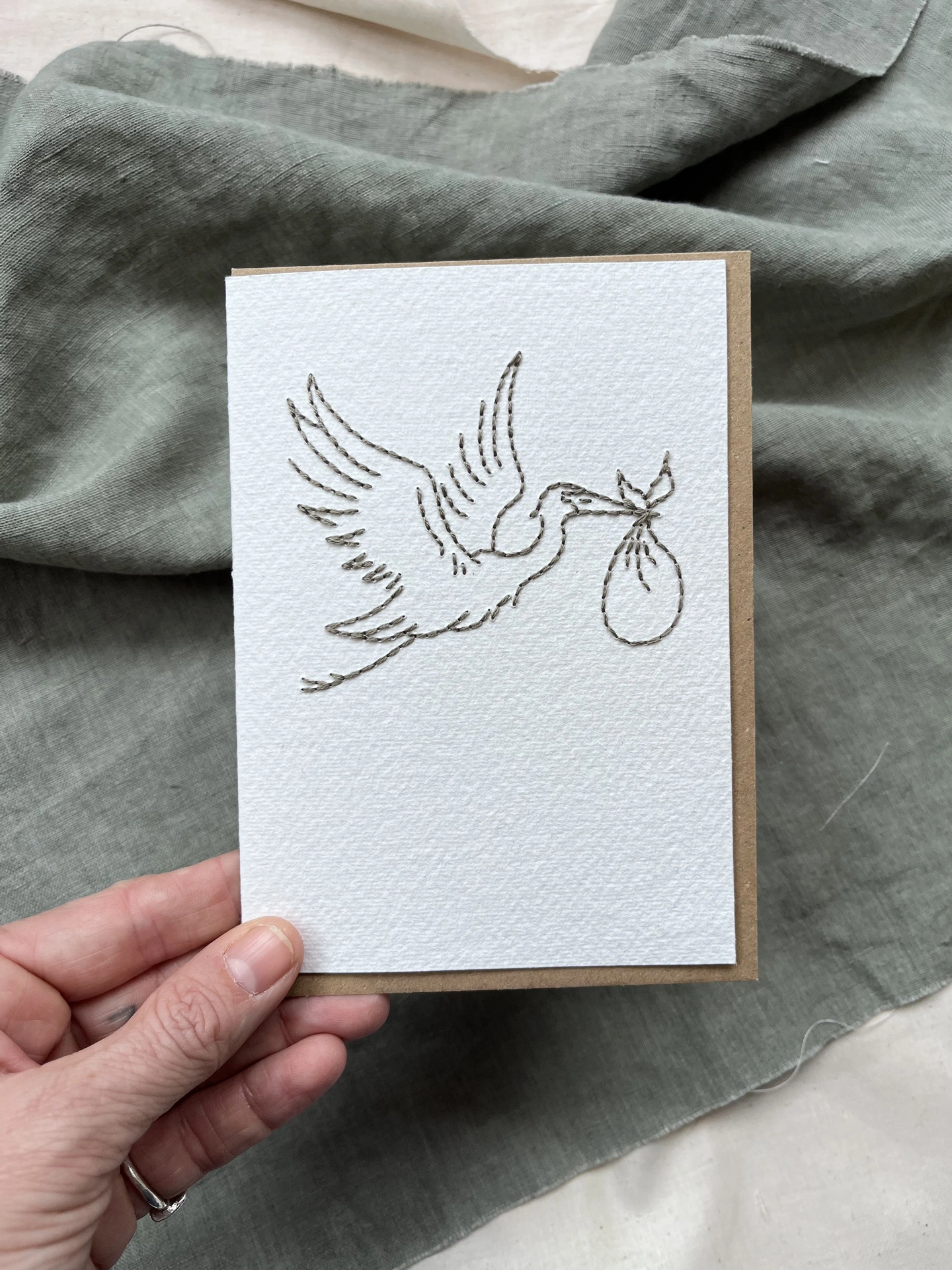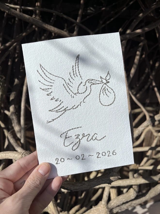 Personalised ‘Stork’ Hand Embroidered New Baby Card