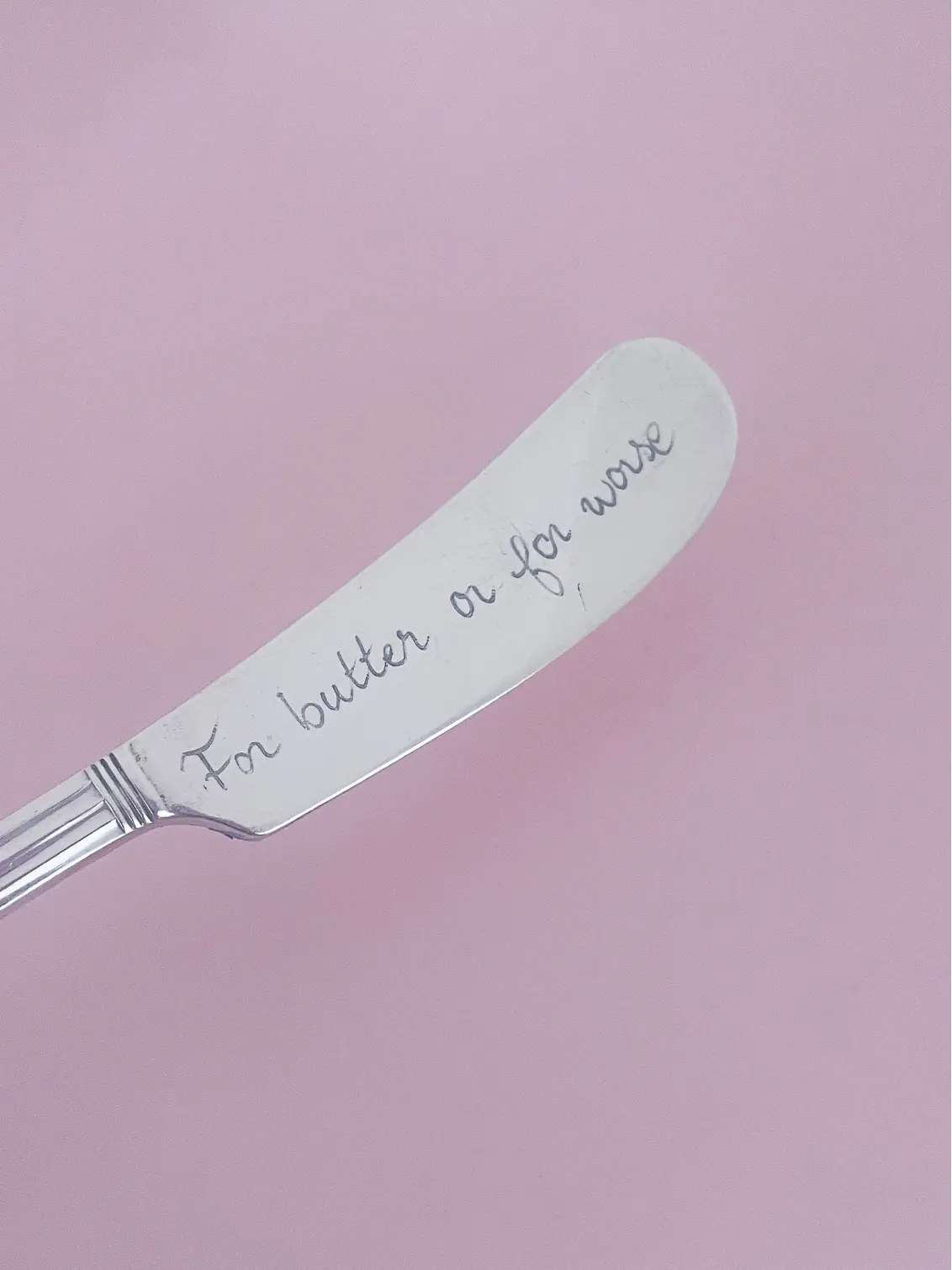 • Vintage butter knife, hand-engraved with the words of your choice on the blade