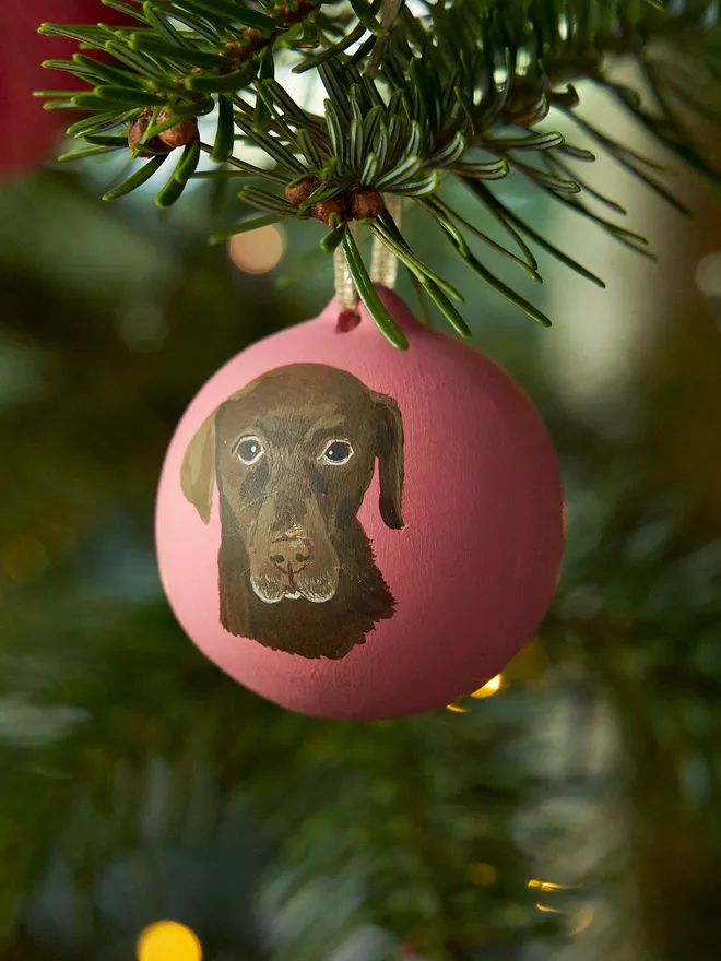 A hand painted portrait of a beloved pet on a ceramic bauble, I really love painting your pets and I hope that this will become a family heirloom to be enjoyed for many years to come!...