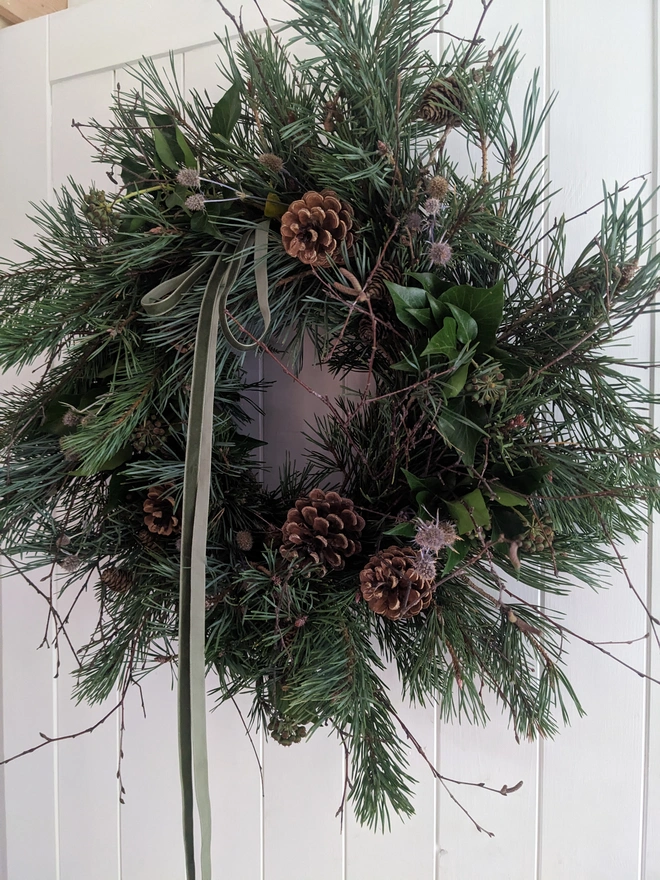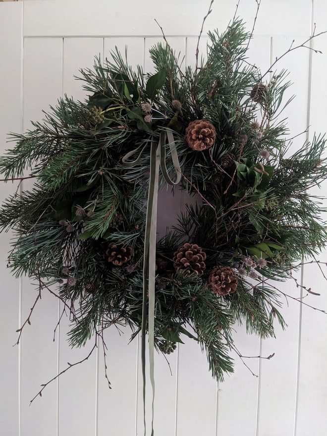 Pine Christmas Wreath with Birch Twigs & Cones – 50cm