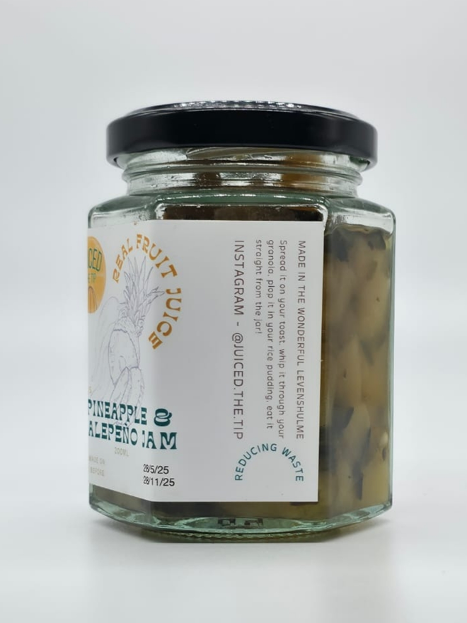 Ingredients: Pineapple, Water, Sugar, Jalapeños, Lime, Ginger, Sea Salt, Citric Acid, Pectin