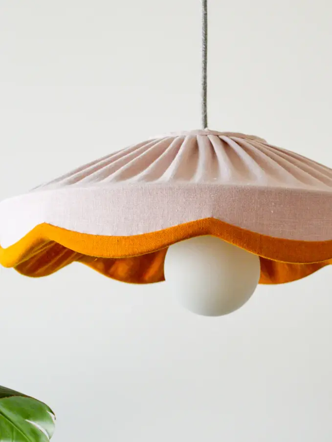 Pink & Mustard Linen Scallop Ceiling Lampshade