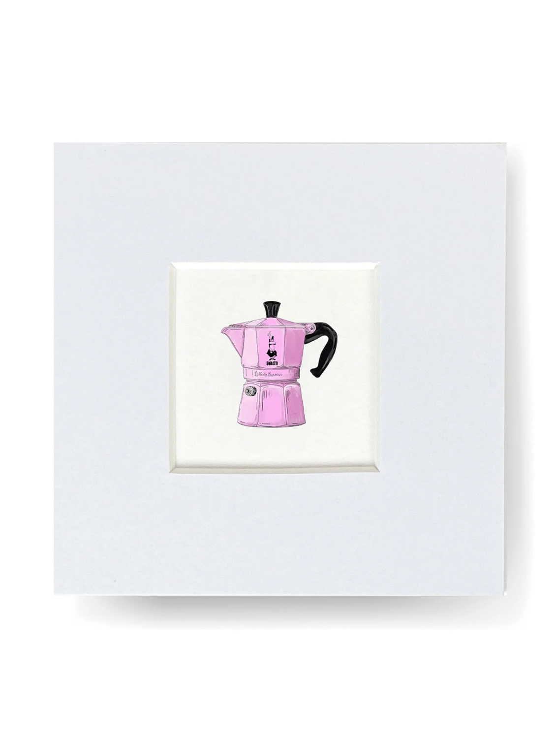 Pink Bialetti Moka Pot Coffee - 4x4" Tiny Print
