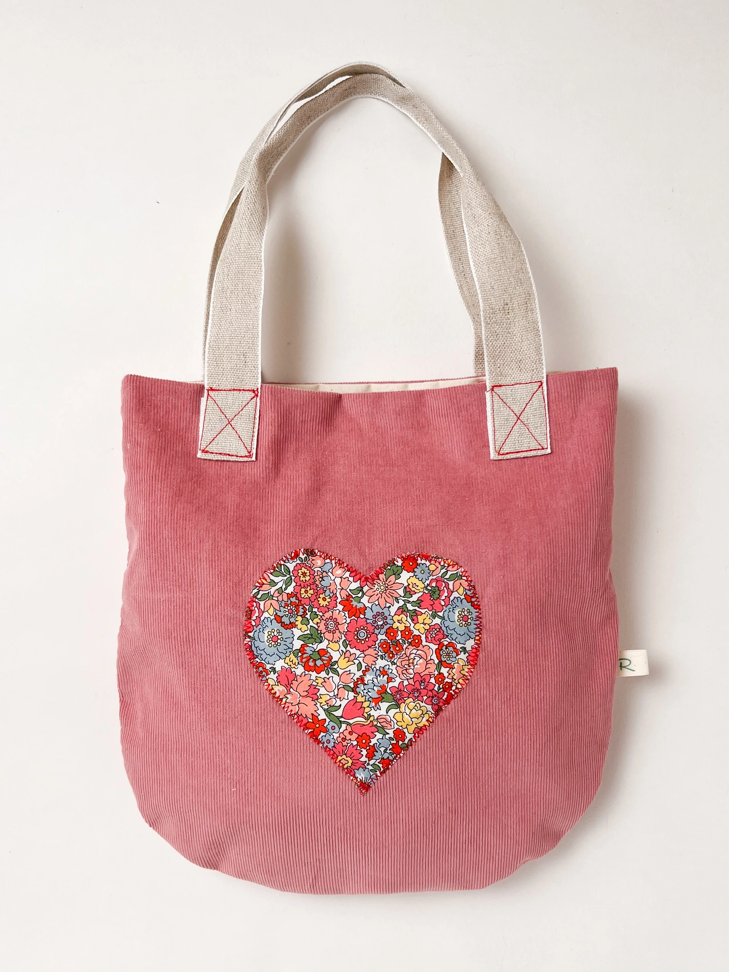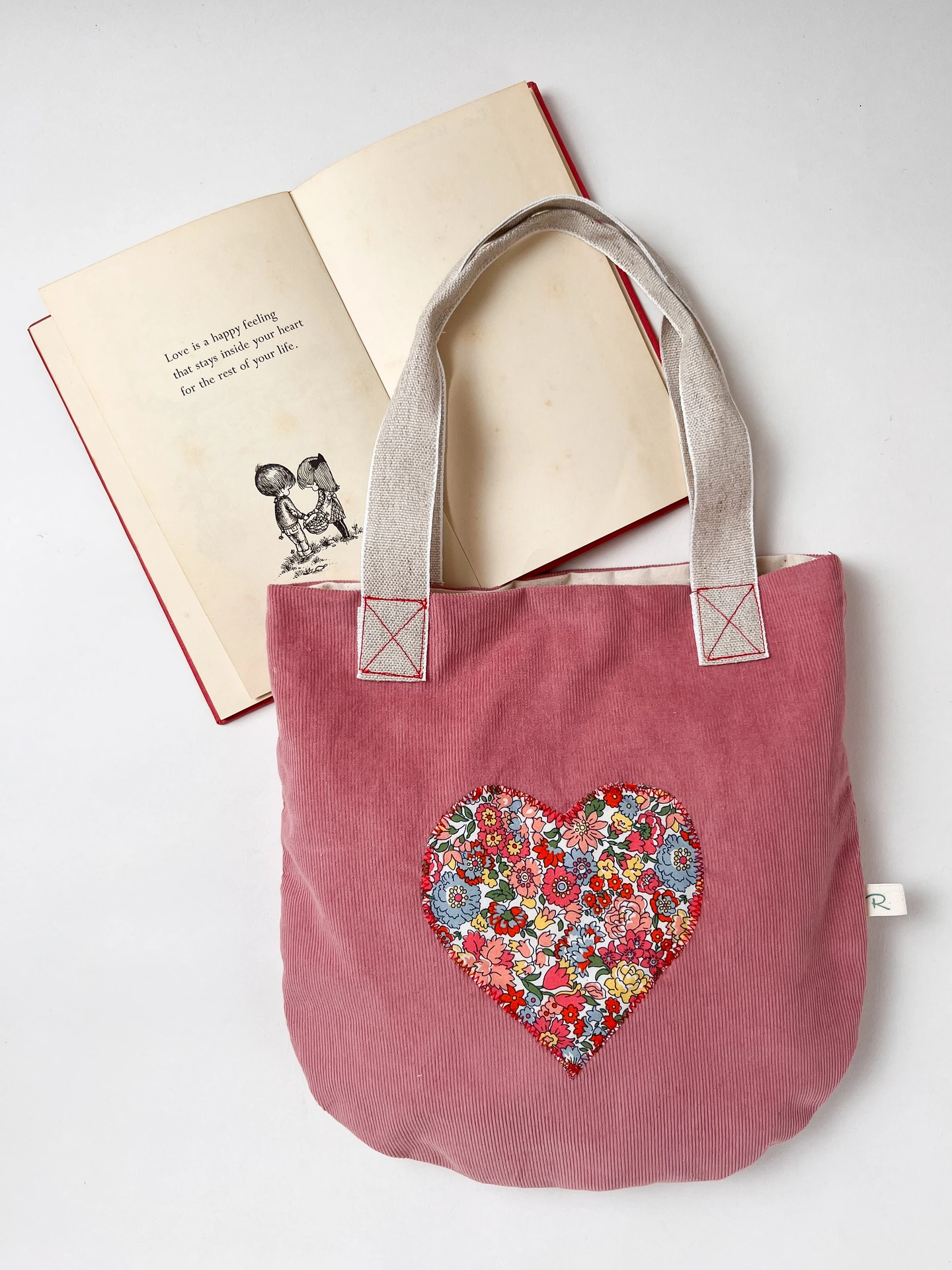 On the front, you will find the sweetest Liberty of London fabric heart sewn on with contrast stitching.