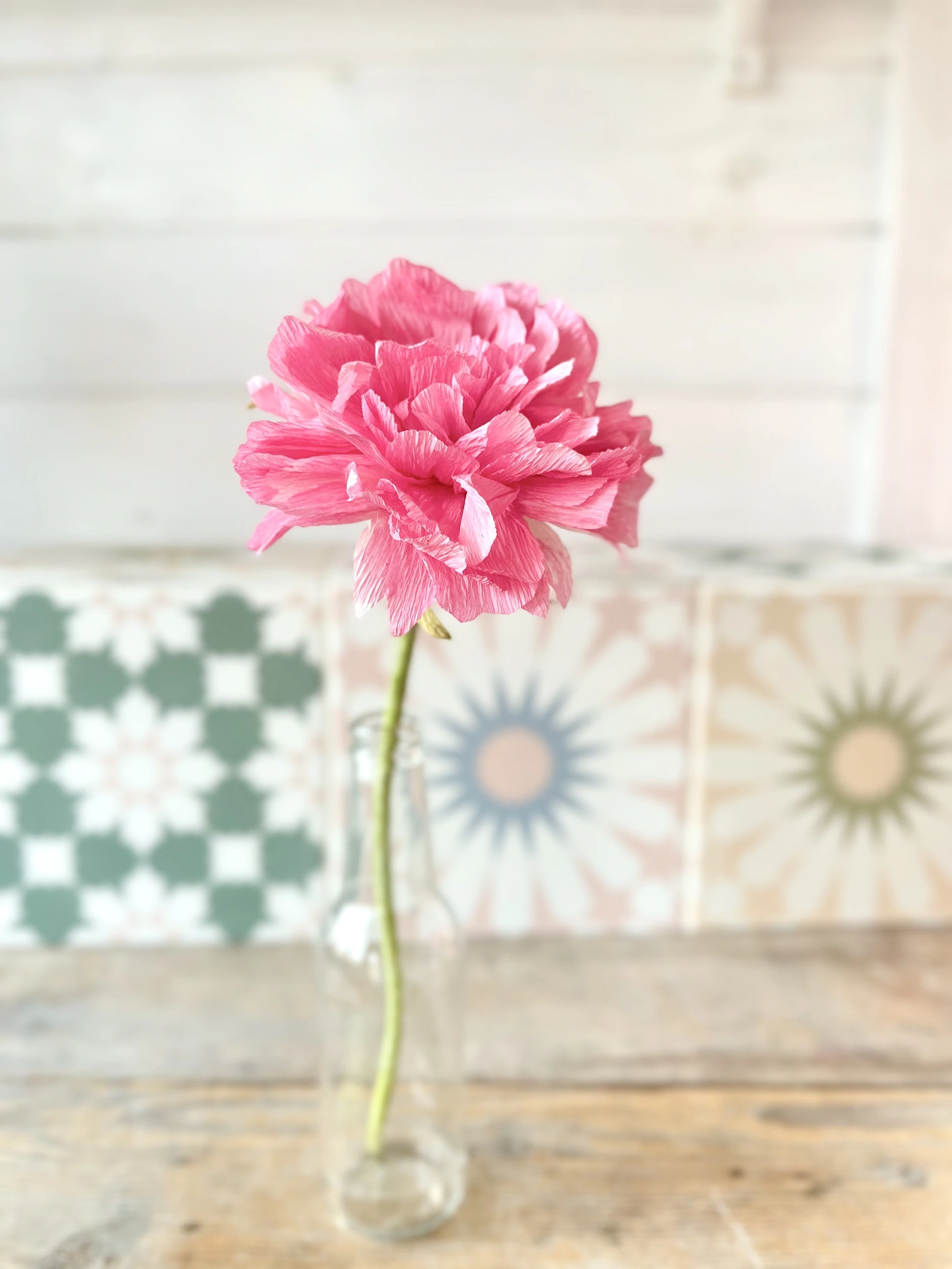 Each crepe paper flower is lovingly handcrafted in my studio, taking up to two hours to create. Every petal is hand-dyed, cut, and shaped with care, resulting in a beautifully unique bloom made just for you.