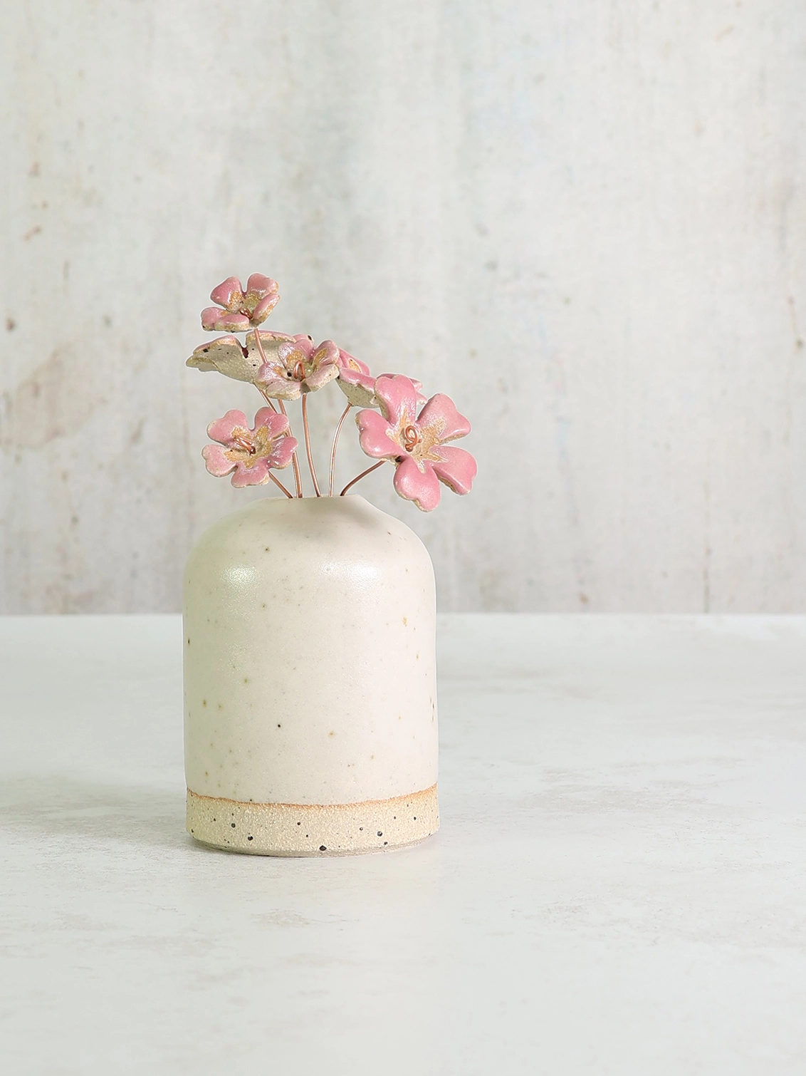 Bright, joyful, and full of personality, the Fuchsia Pink Primrose Ceramic Flower Stems are inspired by the vibrant primroses that bring colour to British gardens each spring. Reimagined in a bold contemporary glaze, these handmade ceramic flowers celebrates both traditional botanical forms and modern artisan design.