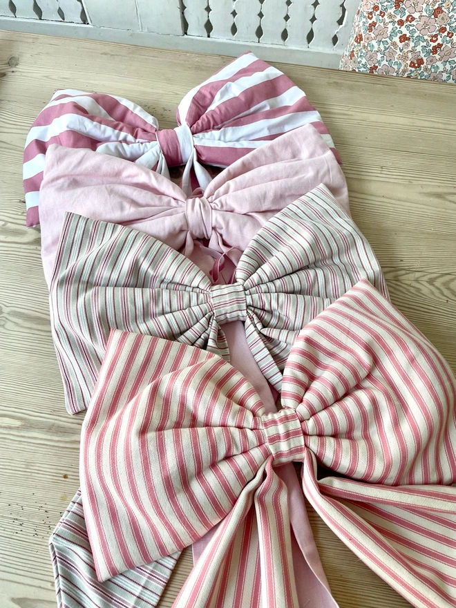 A beautiful oversized bow handmade from a gorgeous vibrant pink ticking stripe cotton fabric...