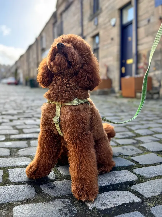 This luxury dog harness is handmade in our Edinburgh studio, designed for ultimate comfort and style. We use quality materials to create our eye-catching designs and luxurious velvet to line each piece. This soft and elegant harness is perfect for any fashionable pup.