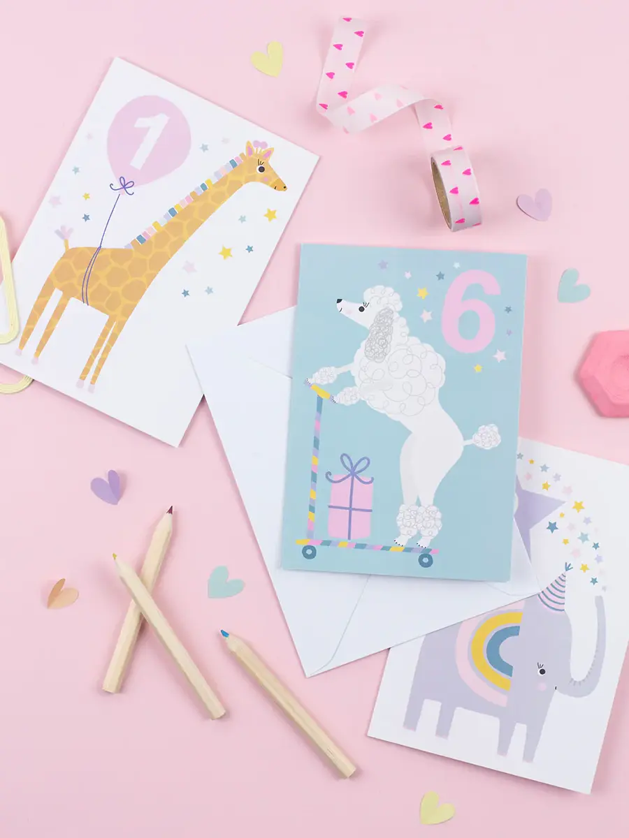 A lovely illustrated children’s birthday card featuring an adorable poodle with the caption “6” displayed in the top right hand corner. This kid’s card is perfect to celebrate your favourite 3 year old’s birthday in a fresh and different way. Printed on l...