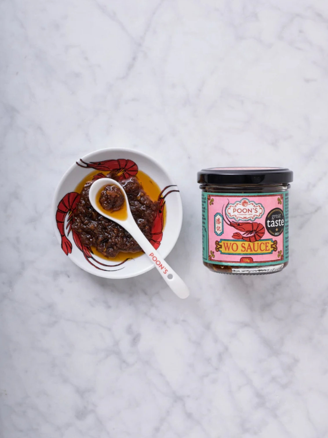 Awarded Great Taste Award 1 Star by The Guild of Fine Foods in 2023. XO Sauce was invented in the 1980s in Hong Kong and is made from dried scallops, dried shrimp, Jinhua ham, chilli, shallots and garlic. Dried seafood and Jinhua ham are considered extremely luxurious and extravagant ingredients in Chinese cooking. The name alludes to the lofty and expensive status associated with XO cognac at the time. Dried scallops are not available in the UK now. Reworking this classic condiment to make it our own, we replaced Jinhua ham with Poon’s Wind Dried Bacon, which we have been producing in the UK since 1970 to an old family recipe. Affectionately known as “Woooooh Sauce” in the kitchen and with the chefs who have used it, try it on buttered bagels, fried eggs, fried rice, plain rice, noodles, pizza and sausage rolls...