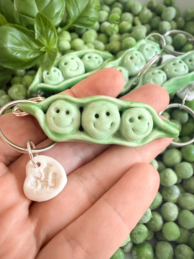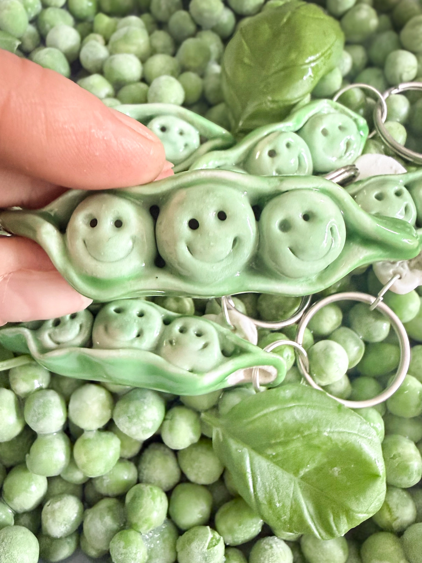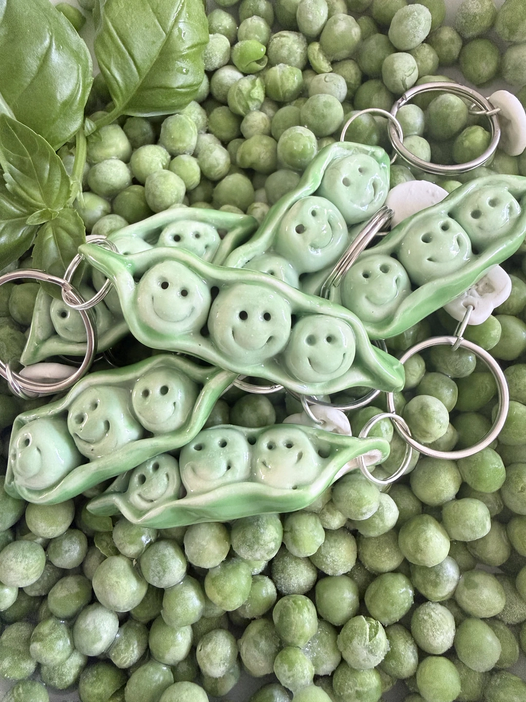 Porcelain peas in a pod keyring. HaPeas. Handmade